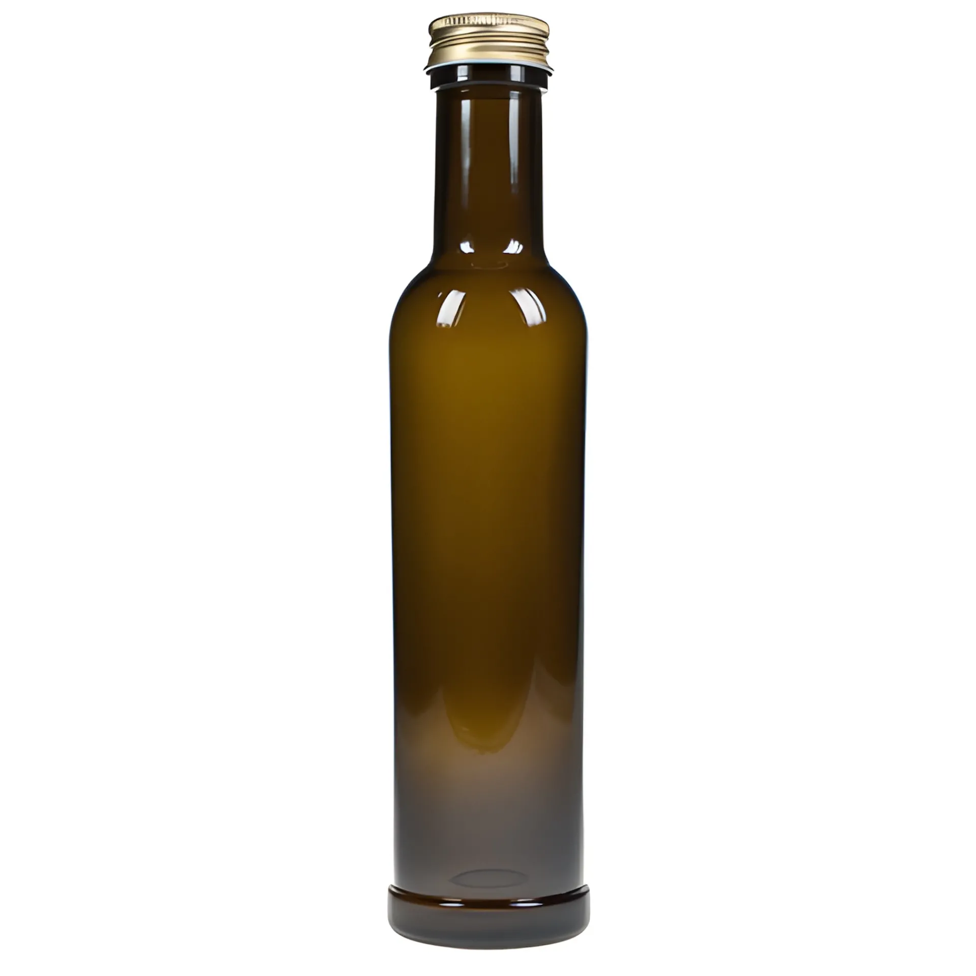 Die schlanke Schraubflasche aus gefärbtem Glas ist perfekt geeignet für lichtempfindliche Flüssigkeiten wie hochwertiges Pflanzenöl, feinen Essig oder Kräuterlikör. Die Kombination aus Braunglas und der langgestreckten Form mit schmalem Hals und ausgeprägtem rundem Boden verleiht der ‚Toscana‘ eine Mischung aus Bodenständigkeit und Eleganz.