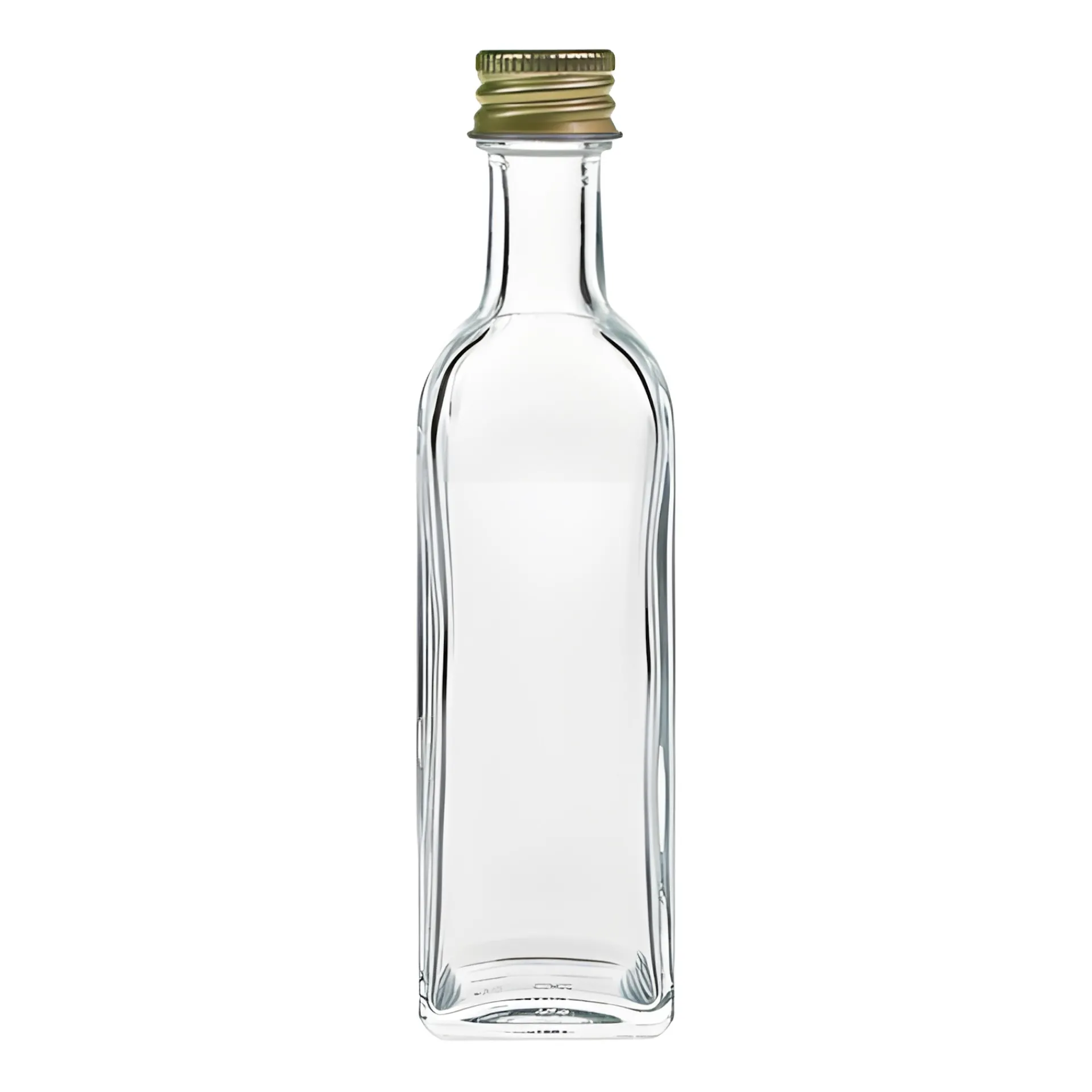 Die kleine Ölflasche der Marasca-Serie hat eine markante quadratische Form und einen kurzen Hals. Mit einer Füllmenge von 60 ml ist die Miniflasche ideal für kleine Kostproben. Befüllt mit Likör, Sirup, aromatisiertem Öl oder Kräuteressig ist sie ein schönes Mitbringsel und Giveaway, über das sich jeder freut. Auch als originelle Deko-Flasche kann sie wunderbar verwendet werden.