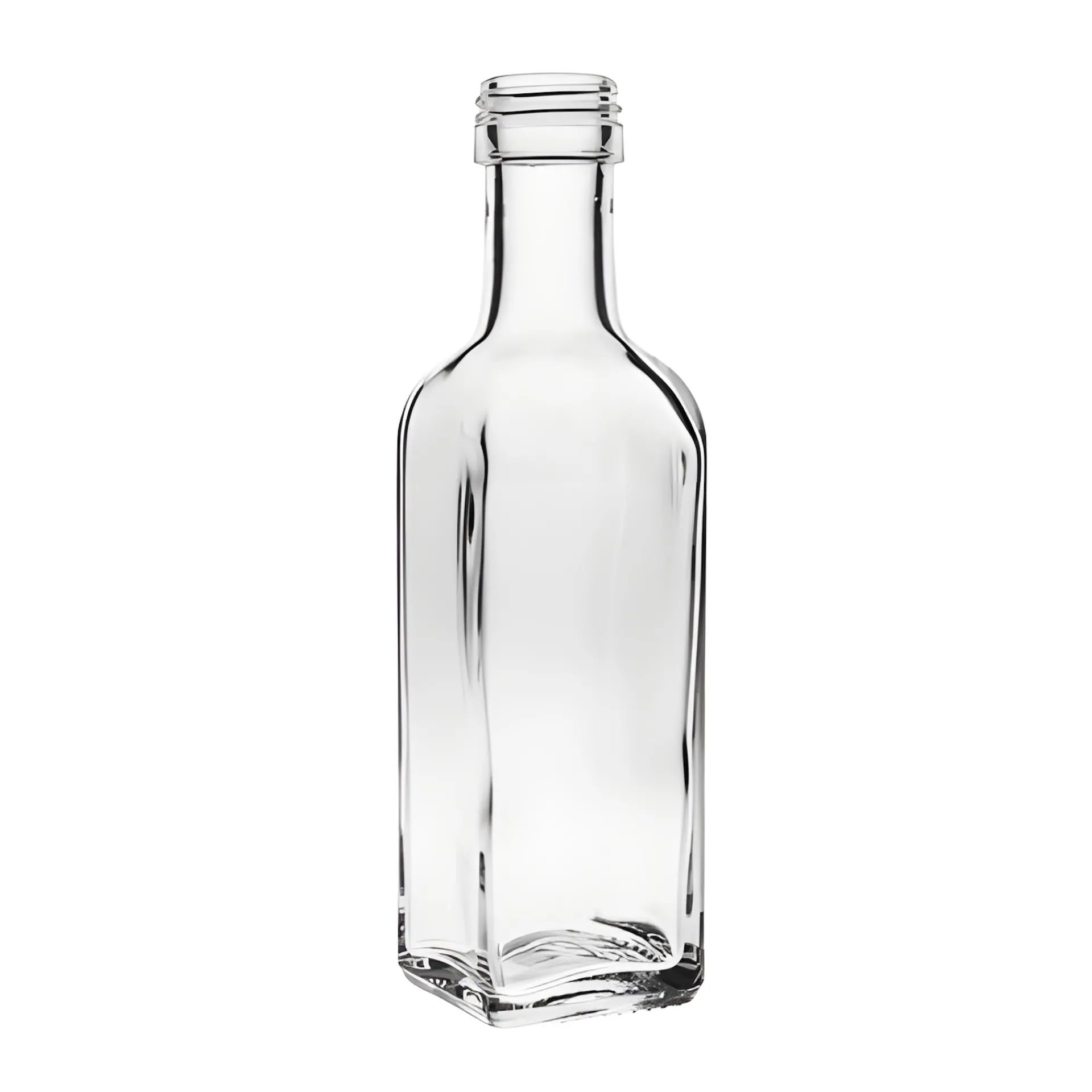 Die kleine Ölflasche der Marasca-Serie hat eine markante quadratische Form und einen kurzen Hals. Mit einer Füllmenge von 100 ml ist die Portionsflasche ideal für kleine Kostproben und zum Transportieren von Soßen und Dressings. Befüllt mit Likör, Sirup, aromatisiertem Öl oder Kräuteressig ist sie ein schönes Mitbringsel und Giveaway, über das sich jeder freut. Auch als originelle Deko-Flasche kann sie wunderbar verwendet werden.