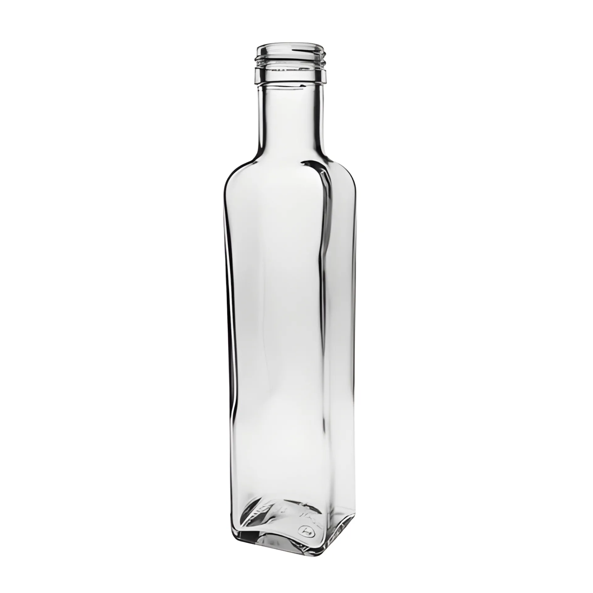 Die klassische Ölflasche der Marasca-Serie hat eine markante quadratische Form und einen kurzen Hals. Mit einer Füllmenge von 250 ml ist sie auch eine ideale Essigflasche, aber natürlich ebenso gut für andere Füllgüter wie Sirup, Saft und Likör zu verwenden.
