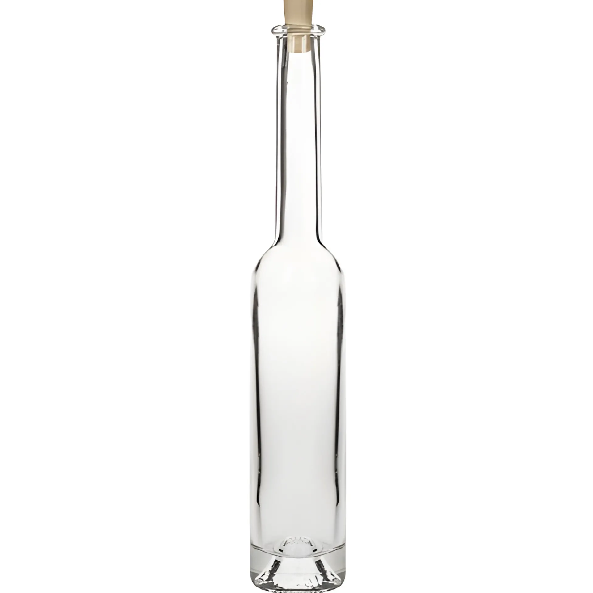 ‚Platina‘ ist eine klassische Likörflasche in eleganter, schmaler Form mit langem Hals und gewölbtem, schwerem Boden. Mit ihrer schönen Tellermündung und schmalen Öffnung eignet sie sich perfekt für hochwertige Spirituosen, Essenzen und Sirup, die fein dosiert werden wollen.