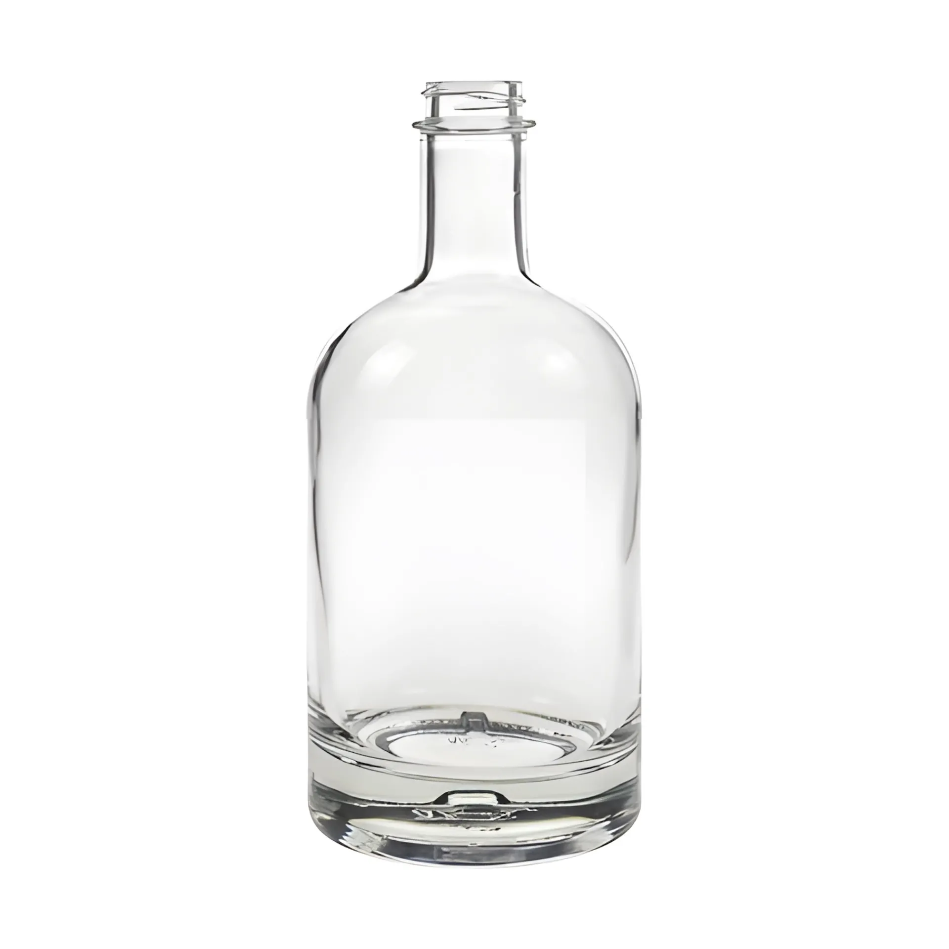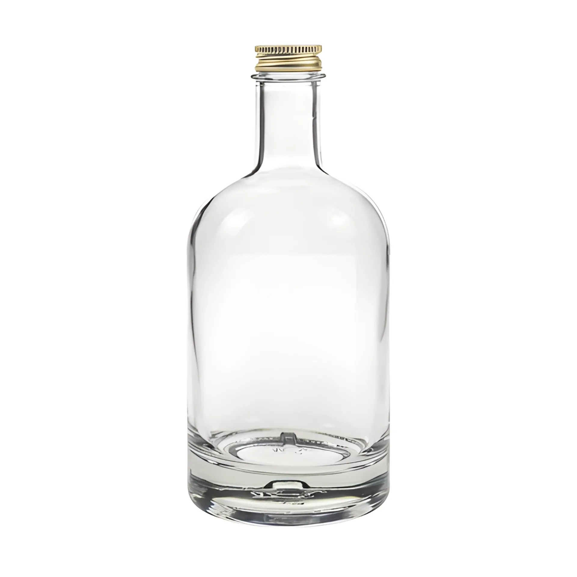 Diese formschöne Klarglasflasche ist ein echter Hingucker. Mit ihrem runden Körper, dem schmalen, kurzen Hals und schweren Glasboden hat sie die typische Form einer klassischen Gin-Flasche. Auch für andere Spirituosen wie Whiskey, Obstbrand oder Likör ist sie super geeignet.