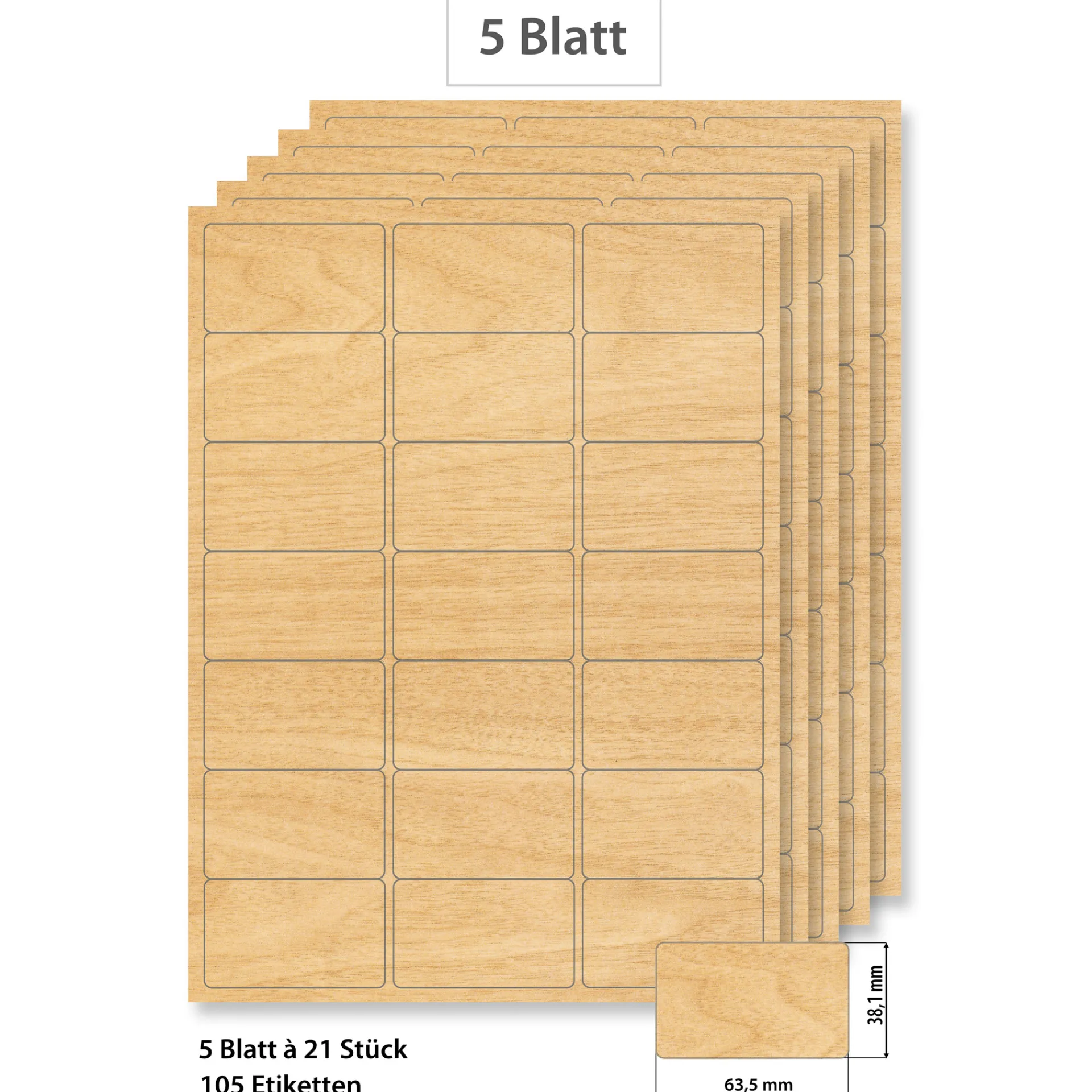 Informationen zum Artikel: Steffis Etiketten 63,5 x 38,1 mm Holzdekor – 5 Blatt A4