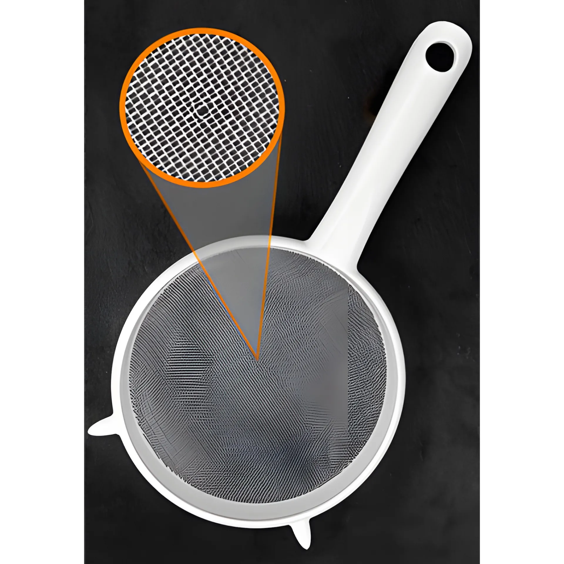 Dieses feinmaschinge Sieb liegt durch die zwei Halterungen auf Tassen, Kannen und Schüsseln fest auf, so kann beim Abseihen und Passieren nichts mehr daneben gehen. Es ist aus hochwertigem Kunststoff und spülmaschinengeeignet.