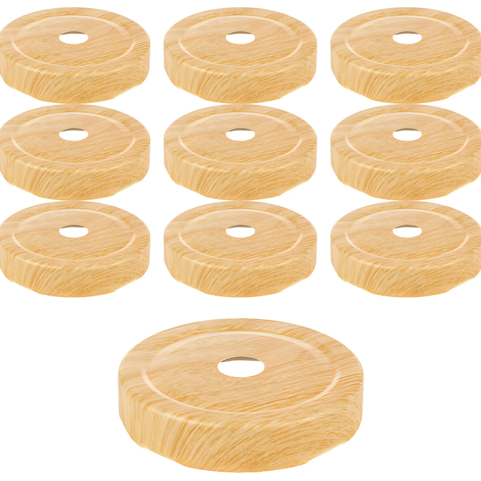 Der Trinkhalmdeckel Deep mit Holzdekor im praktischen 10er-Pack passt auf Twist-Off-Gläser mit einer TO 66 Deep-Mündung. Er hat ein eingestanztes Loch von 13 mm Durchmesser für einen Strohhalm und ist besonders gut zum Servieren und Trinken von Bubble Tea geeignet, da der typisch breite Trinkhalm durch das Strohhalmloch passt.