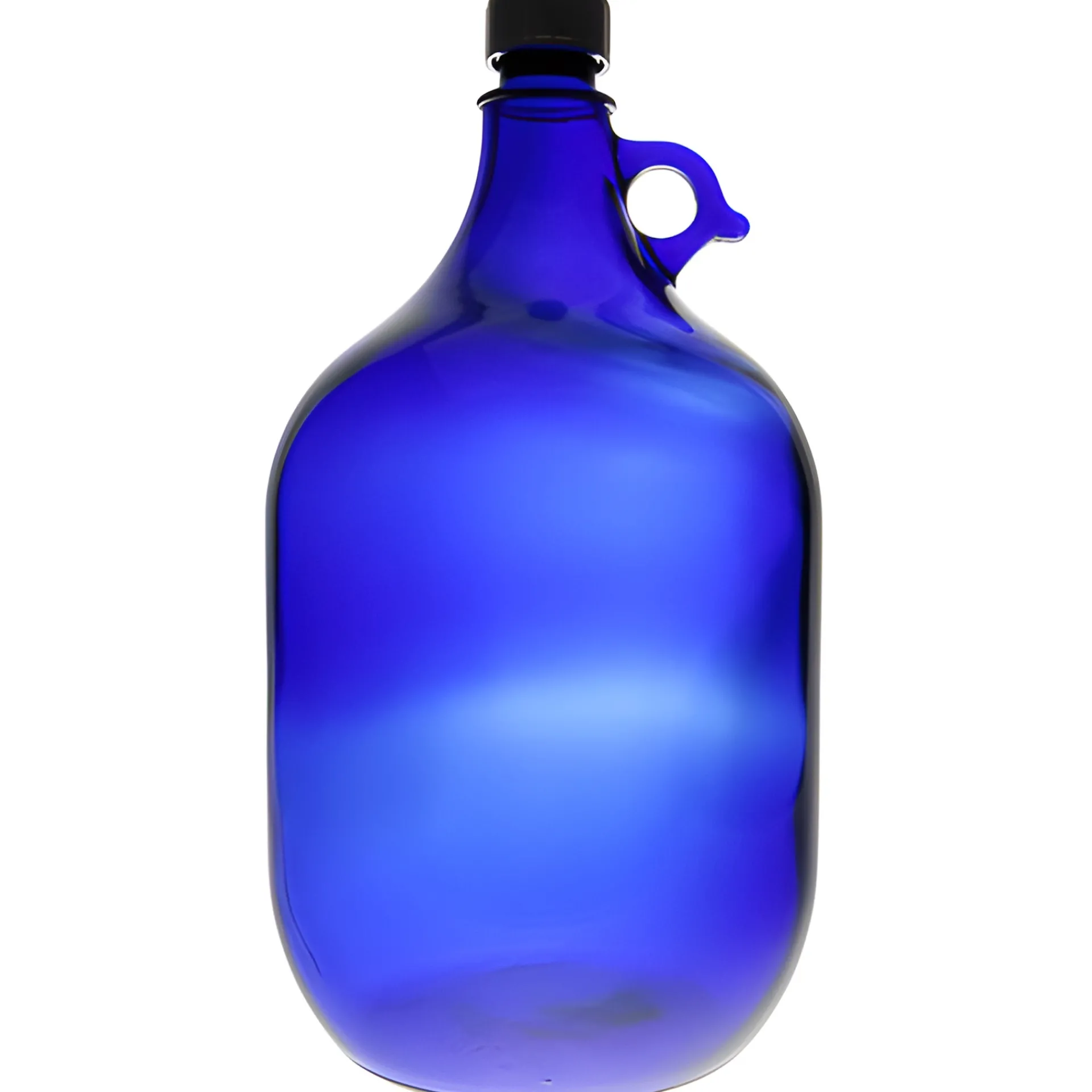 Die große, blaue Gallone ist ein dekoratives Aufbewahrungsgefäß für Flüssigkeiten aller Art. Mit einem Füllvolumen von 5 Litern kann darin eine größere Menge Wasser oder Wein, aber auch Saft, Öl und Hochprozentiges abgefüllt werden. Der robuste Glasballon hat eine Schraubmündung und ist durch sein gefärbtes Glas ideal für lichtempfindliche Inhalte. Ihre bauchige Form mit kurzem Hals und kleinem Henkel und ihre kräftige, kobaltblaue Farbe verleihen der Gallone mediterranes Flair und eine starke Wirkung. Ein schöner Blickfang in Wohnräumen und auf Terrassen.
