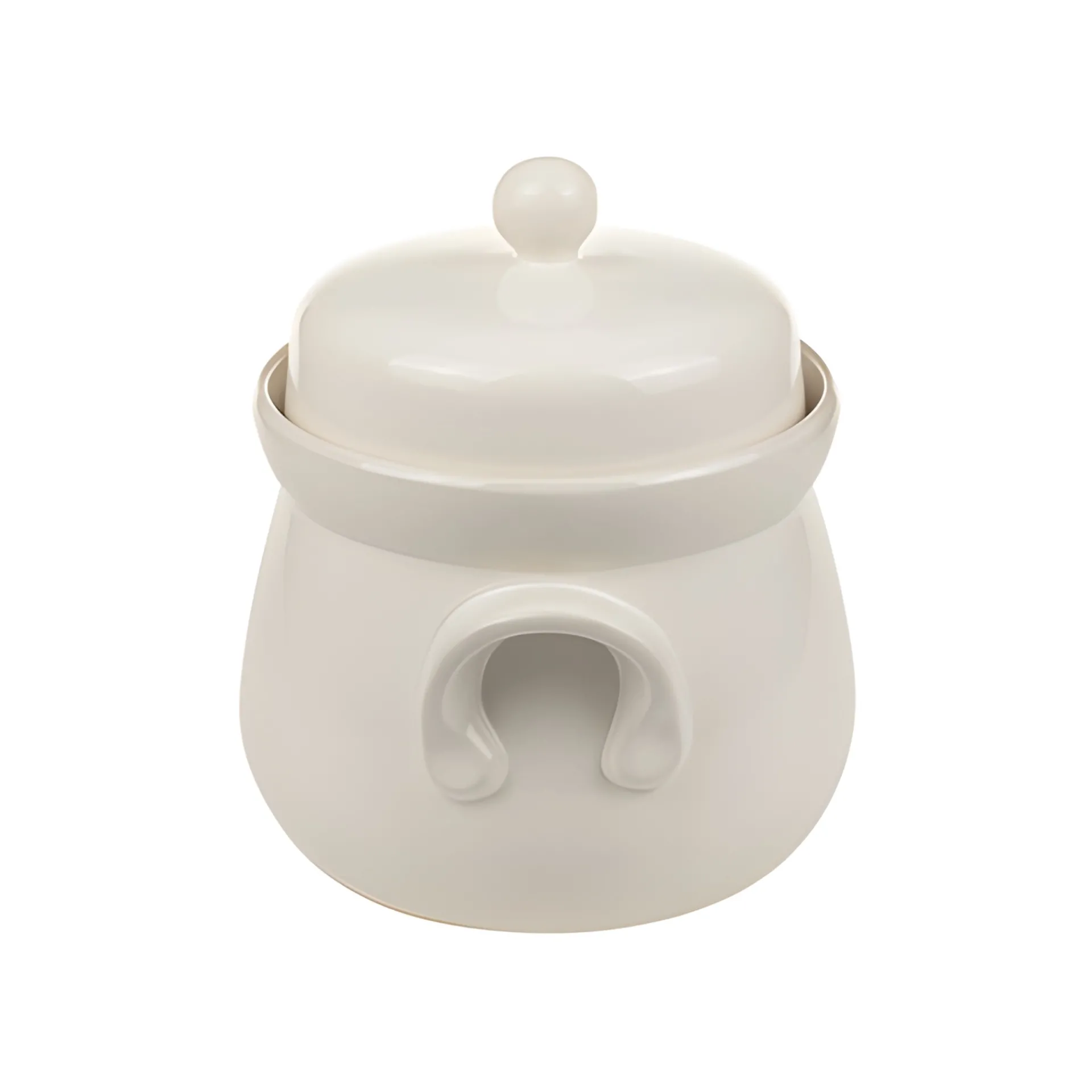 Mini-Gärtopf mit Deckel und Beschwerungssteinen zum Fermentieren. Der Sauerkrauttopf hat ein Fassungsvermögen von 4 Litern und ist aus cremefarbener Keramik. An der Öffnungsmündung des Topfes ist eine zusätzliche Vertiefung (Nut) angebracht, in die der Deckel eingesetzt wird. Mit dem passenden Deckel und den Fermentiersteinen haben Sie so alles zur Hand, um Sauerkraut, Kimchi und Salzgurken selbst herzustellen.