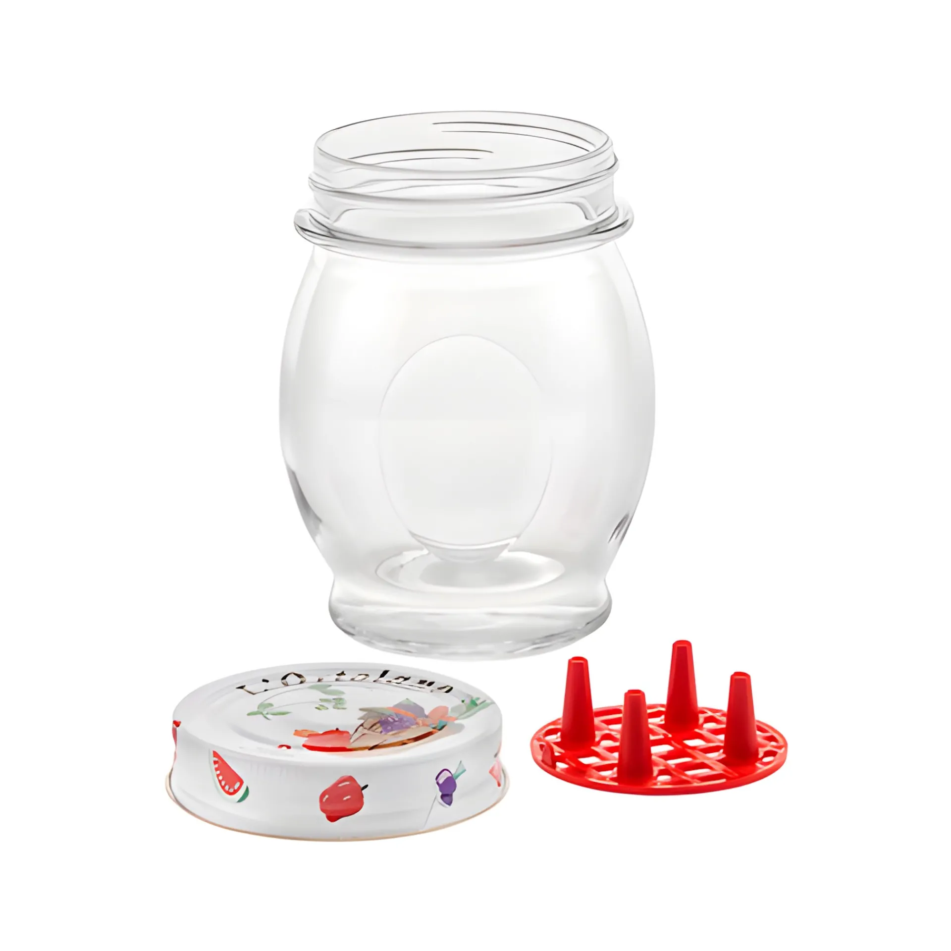 Das Marmeladenglas wird inklusive des bunt bedruckten Schraubdeckels CT 70 geliefert, der mit einem Vakuumknopf ausgestattet ist. Dieser Verschluss ist auch passend für Mason Jars Regular Mouth.