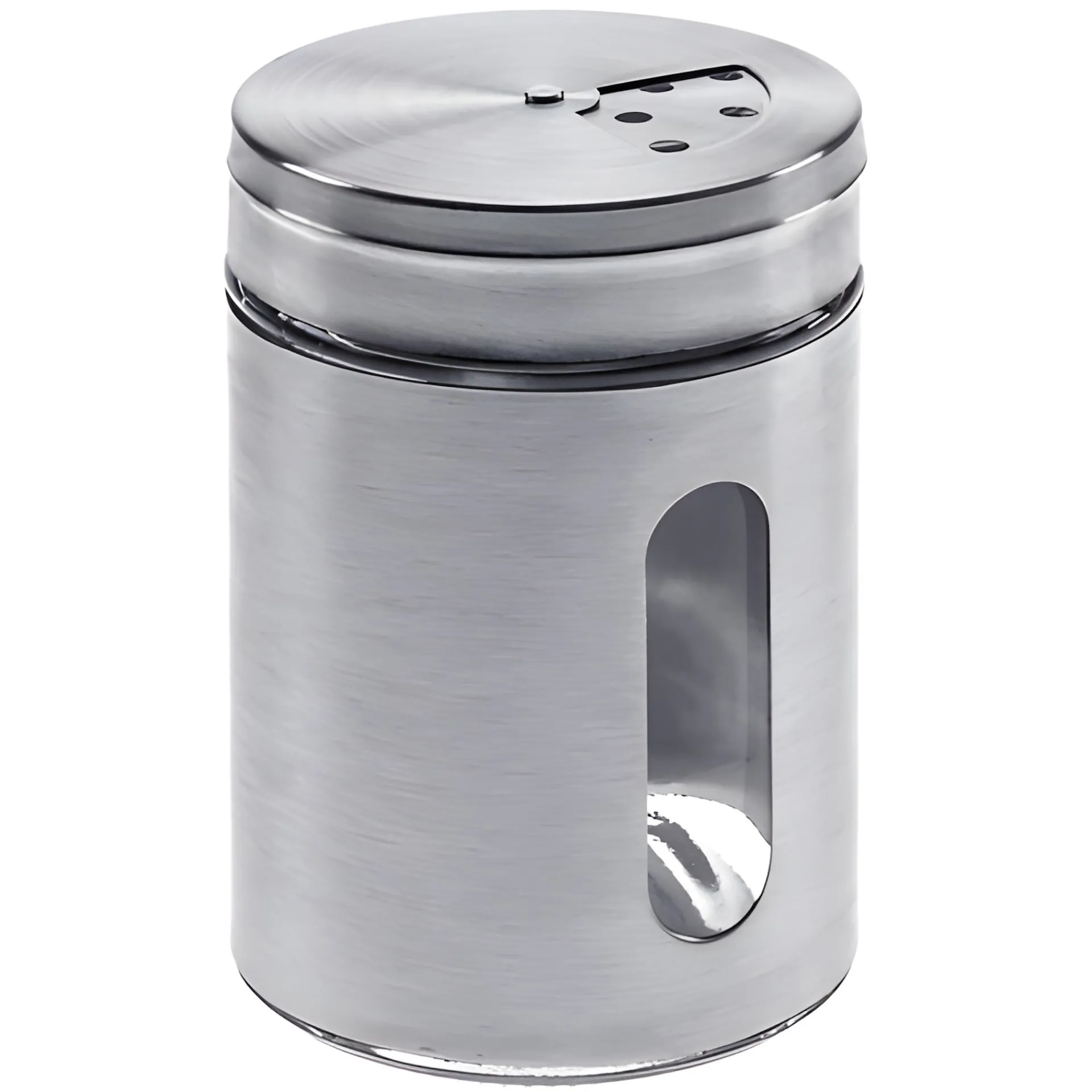Der praktische Salz- oder Gewürzstreuer kombiniert die Vorteile von Glas als Behältermaterial mit einer modernen Edelstahl-Optik und ist ein echtes Schmuckstück für Küche und Esstisch. Im verschlossenen Zustand erinnert er an ein kleines Vorratsglas. Ein Füllstandsfenster gibt dabei den Blick ins Innere frei. Doch das unaufdringliche Design erweist sich als äußerst vielseitig: Aufgrund der drehbaren Abdeckung und dreier unterschiedlicher Lochungsgrößen lässt sich das Würzen genau dosieren.