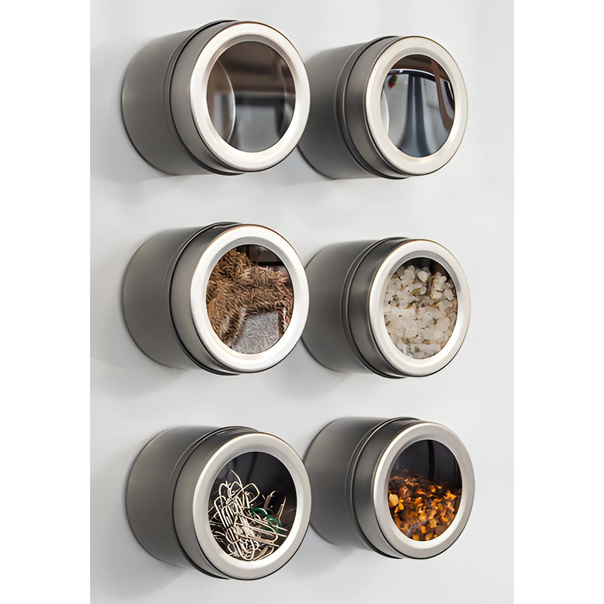 Magnetische Aufbewahrungsdosen für Kräuter, Gewürze oder Kochutensilien sind überaus praktisch. Das Besondere ist nicht nur dass sie magnetisch ist, sie hat auch eine super handliche Form, sodass das kleine Döschen platzsparend an Magnetleisten oder am Kühlschrank angebracht werden kann. Durch ihren transparenten Deckel ist der Inhalt leicht einsehbar und dreht man ihn an die entsprechende Position, wird die Dose im Handumdrehen zum Streuer.