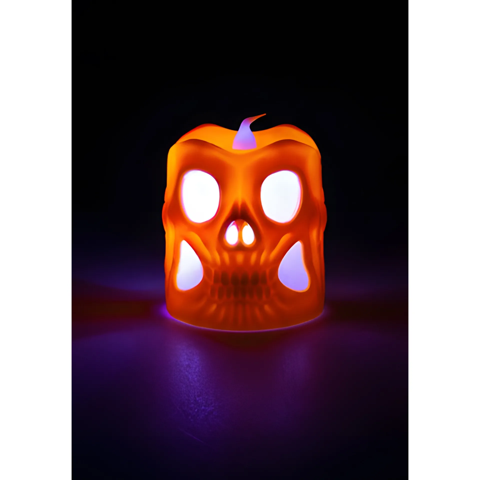 Informationen zum Artikel: LED-Kerze ‚Totenkopf‘ 6 x 6 cm, mit Farbwechsel, orange
