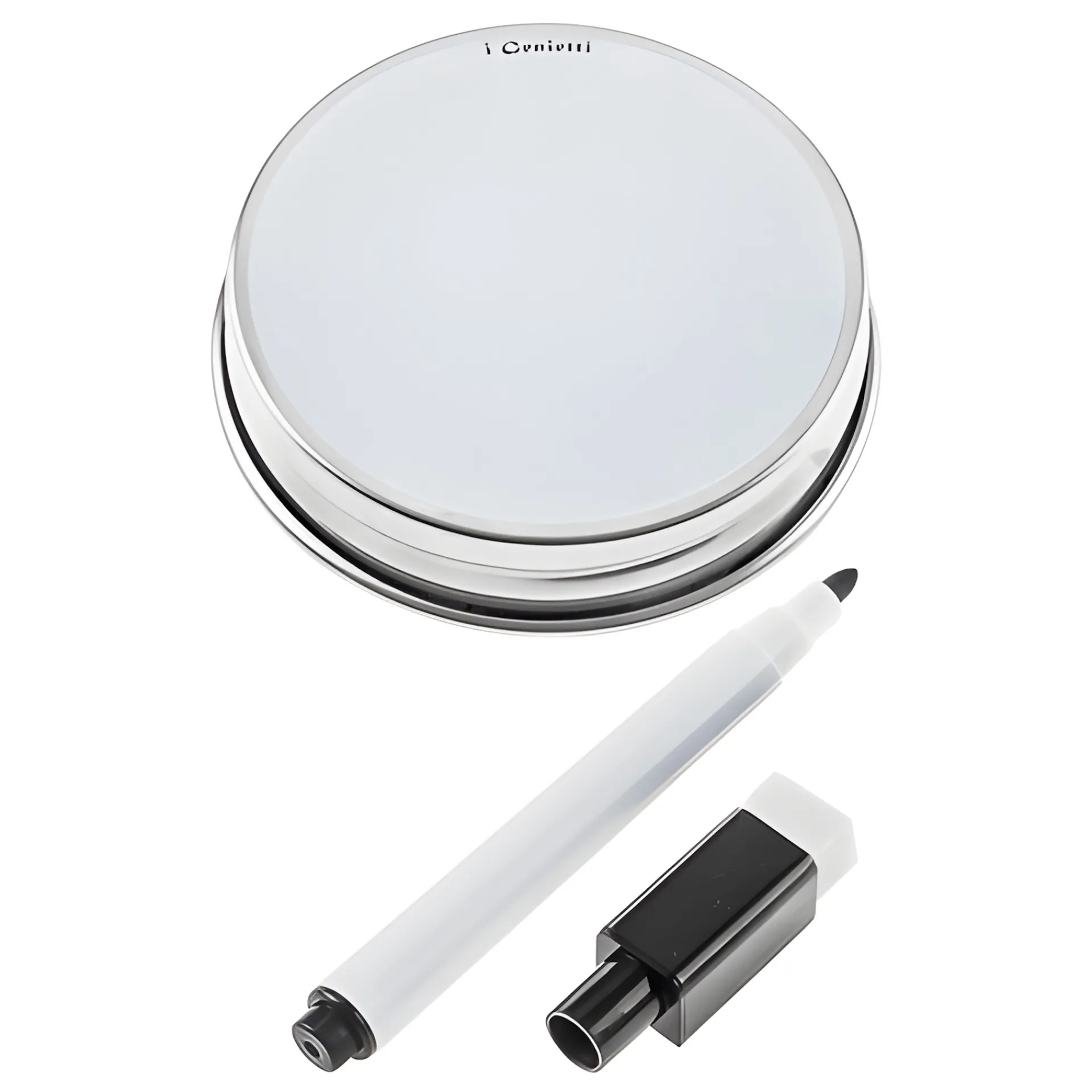 Auf der Vorderseite des Schraubdeckels befindet sich ein Whiteboard, das mit dem beigelegten Tafelstift immer wieder neu gestaltet werden kann. Der schwarze Stift hat eine Filzkappe, mit der die Beschriftung ohne Rückstände einfach wieder weggewischt werden kann.