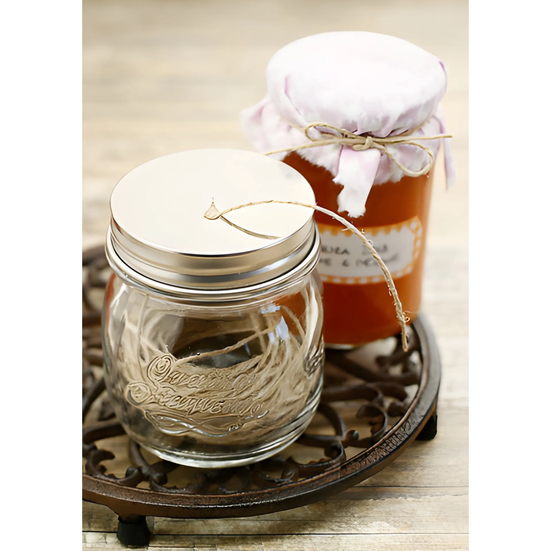Praktischer Schraubverschluss mit tropfenförmiger Aussparung für das leichte Entnehmen von Küchengarn, Wolle oder Geschenkbändern. Der Deckel aus Edelstahl ist ideal geeignet, um unterschiedliche Bänder in einem Glas aufzubewahren, herauszuziehen und diese je nach Bedarf abzuschneiden. So haben Sie die Schnur schnell zur Hand, ohne dass diese lose rumfliegt und sich verheddert.