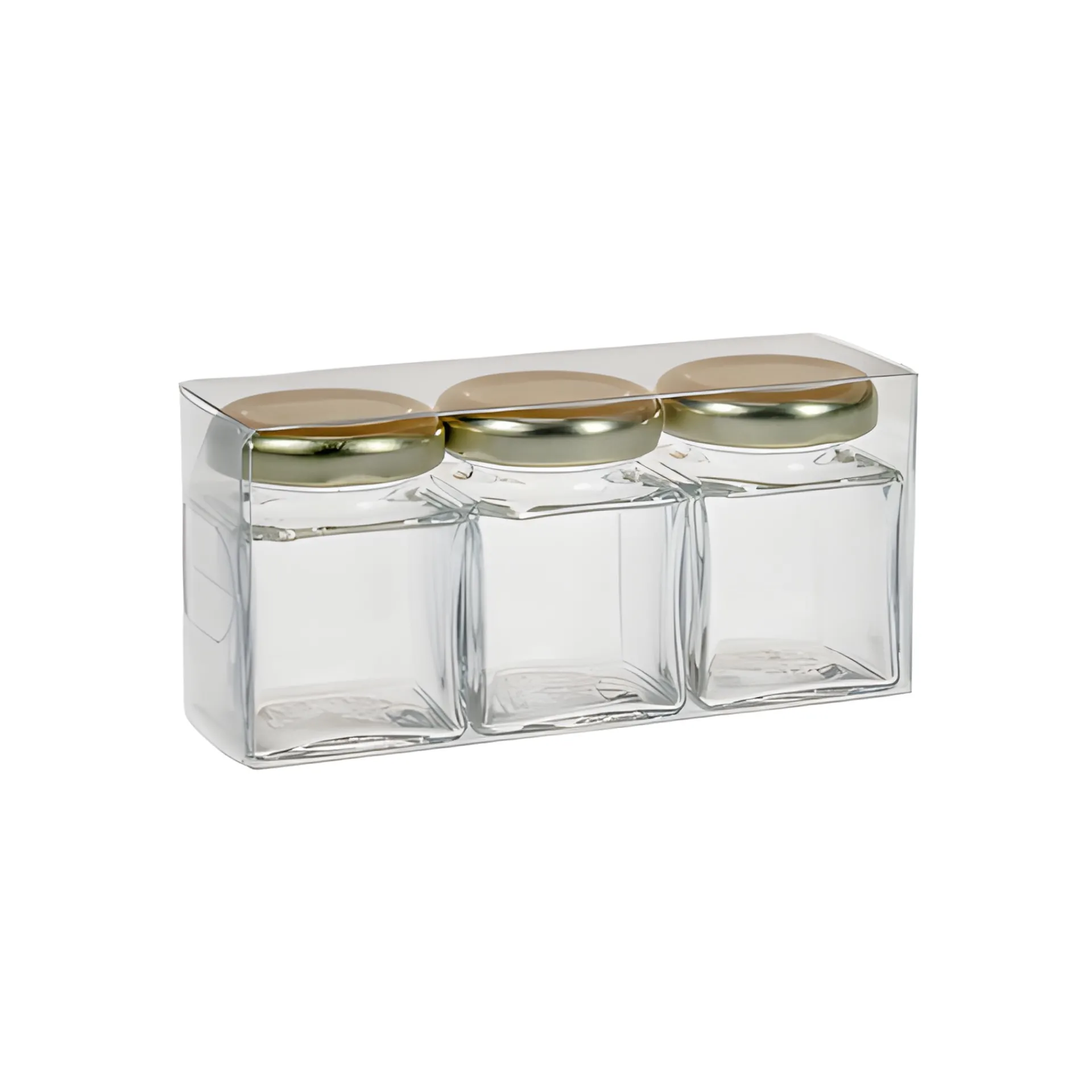 Die hochwertige, transparente Klarsichtschachtel ist eine schöne Die hochwertige, transparente Klarsichtschachtel ist eine schöne Geschenkverpackung für Einmachgläser mit entsprechenden Maßen, die darin dekorativ nebeneinandergestellt werden können.