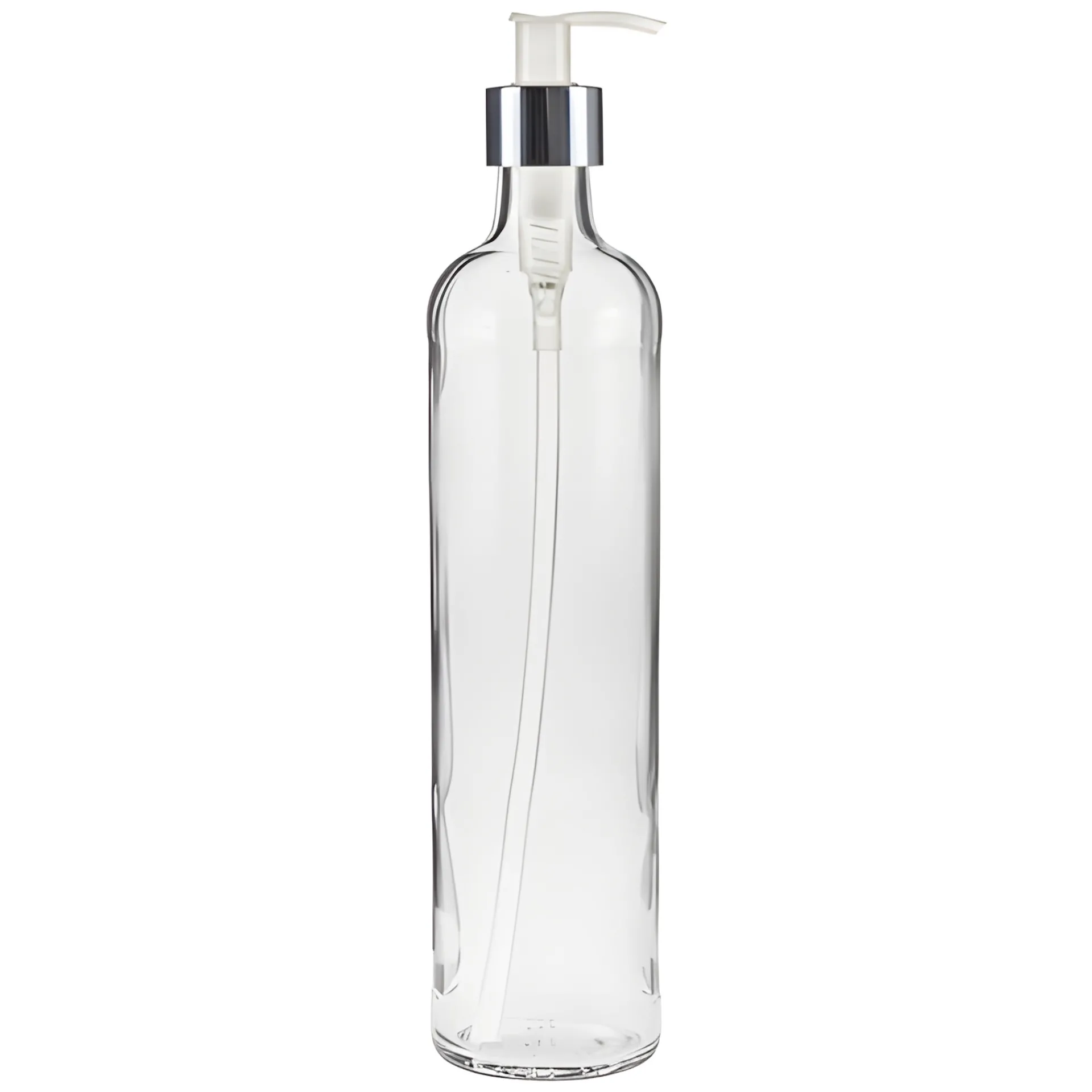 Mit der Lotionpumpe können Sie flüssige Kosmetika genau dosieren wie zum Beispiel Körperlotion, Flüssigseife, Shampoo, Haarspülung oder andere schöne Pflegeprodukte. Der Dosierpumpen-Aufsatz passt auf alle Schaubflaschen mit einem PP 28-Gewinde und einer Mindesthöhe von 7 cm, ist aus Kunststoff (PP) und hat eine silberfarbene Ummantelung, die jede Flasche hochwertig erscheinen lässt. Er lässt sich einfach auf die Flasche schrauben und macht sie so zu einem schönen Seifen- oder Cremespender. Die maximale Höhe der Schraubflasche sollte 23 cm betragen.