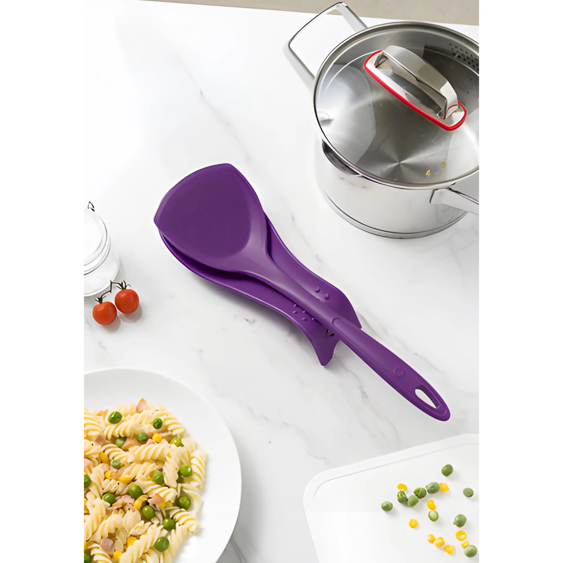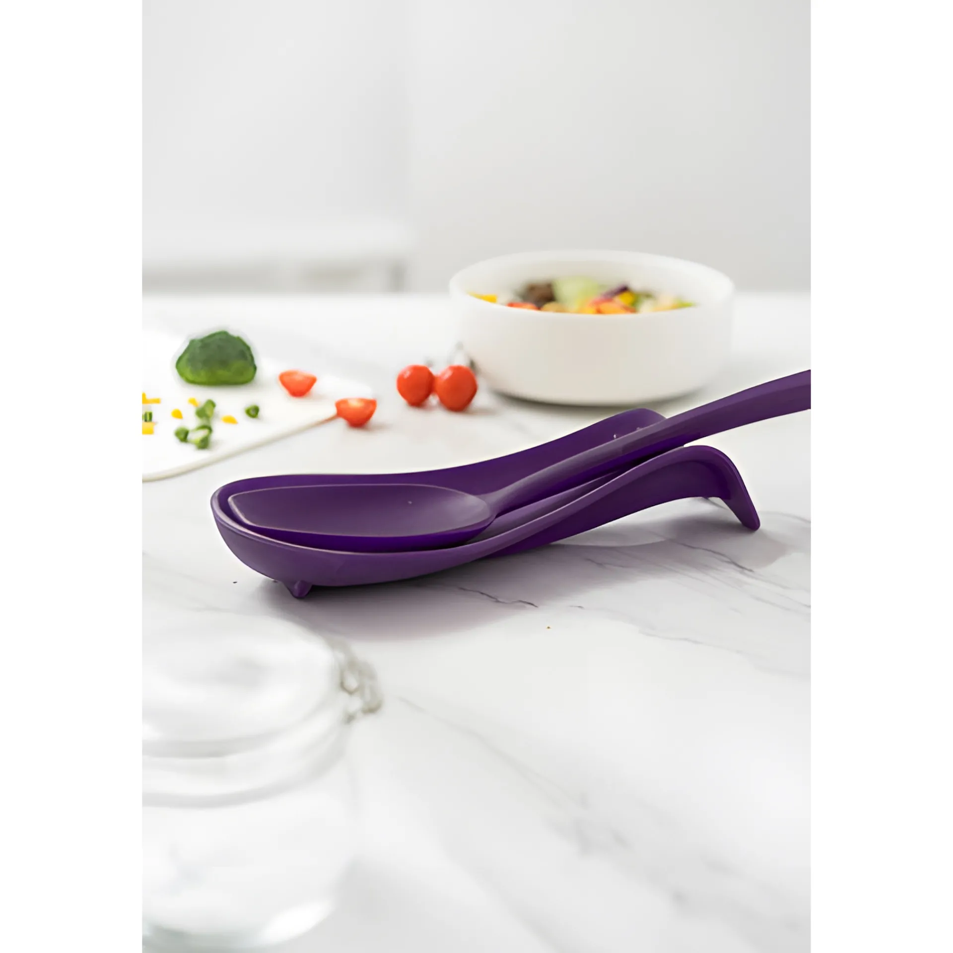 Die violette Löffelablage von Kochblume ist die perfekte Ergänzung für Ihre Küche. Sie hält die Arbeitsfläche und den Herd bei der Zubereitung von Speisen sauber und sorgt für Ordnung. Schmutzige oder fettige Kochutensilien können ganz bequem neben dem Topf auf die Silikonablage gelegt werden. Der erhöhte Rand verhindert, dass Öl oder Soßen daneben kleckern.