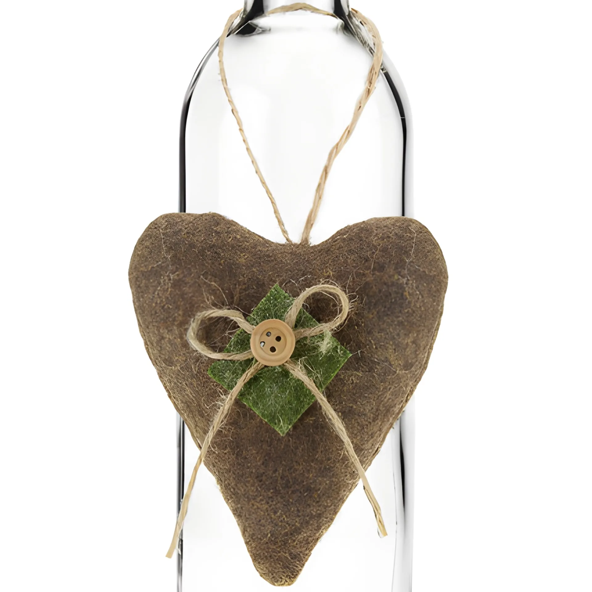 Hübscher Filzanhänger in Herzform mit Zierschleife und Holzknopf. Der Anhänger kann wunderbar an Geschenken angebracht und als dekorative Zugabe in Präsentkörben platziert werden. Auch als Baumbehang und Fensterschmuck macht dieses rustikale Herz eine gute Figur.