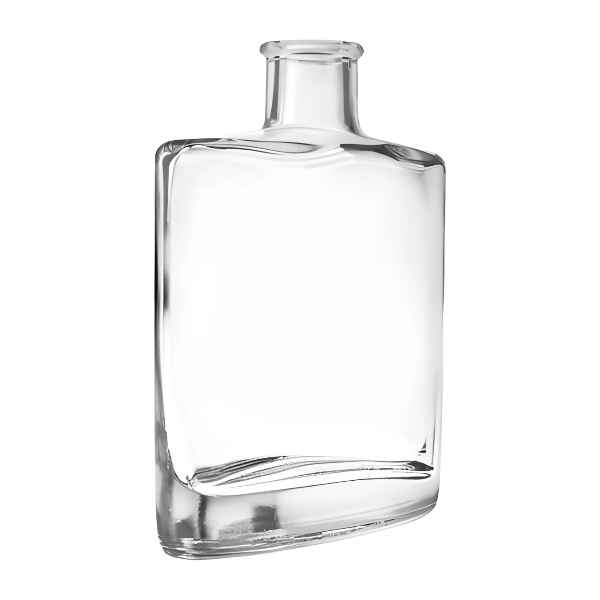 ‚Ambience‘ ist eine sehr schöne Flasche in besonders schmaler, elliptischer Form, die an einen gläsernen Flachmann erinnert. Sie hat einen kurzen Hals, breite Schultern und eignet sich sehr gut zum Abfüllen von Whisky, Brandy, Gin oder Cognac. Ebenso gut zur Geltung kommen in dieser hübschen Schmuckflasche selbstgemachter Likör, Öl oder Essig.