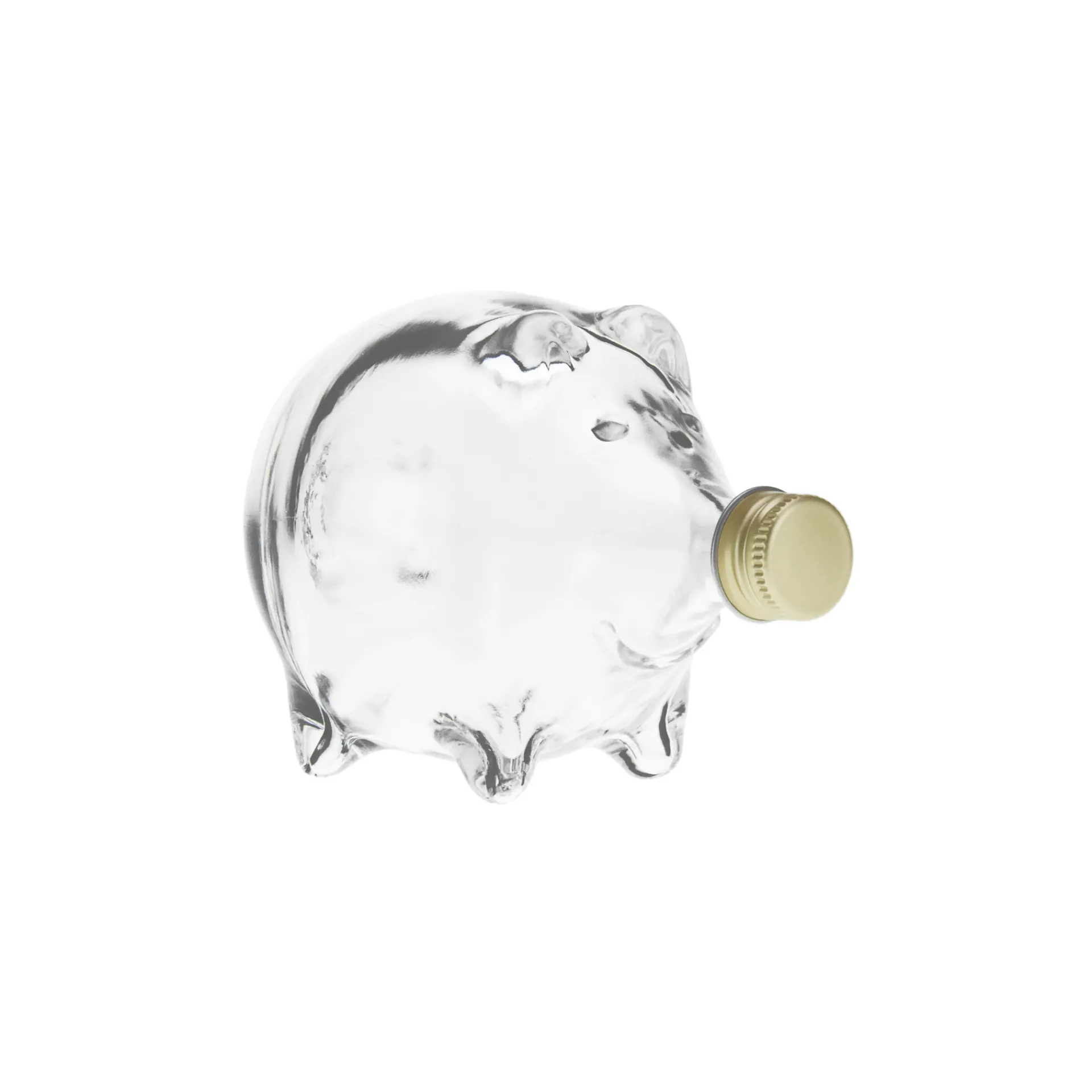 Dieses niedliche Fläschchen sieht aus wie ein Sparschwein, wird aber nicht mit Geld, sondern mit flüssigen Leckereien befüllt. Mit 100 ml Volumen ist es ideal für besondere Abfüllungen, kleinere Mengen Glückssirup oder Geschenke. Das dekorative Schweinchen kann auf drei verschiedene Arten hingestellt werden: aufrecht, auf allen Vieren oder sitzend.