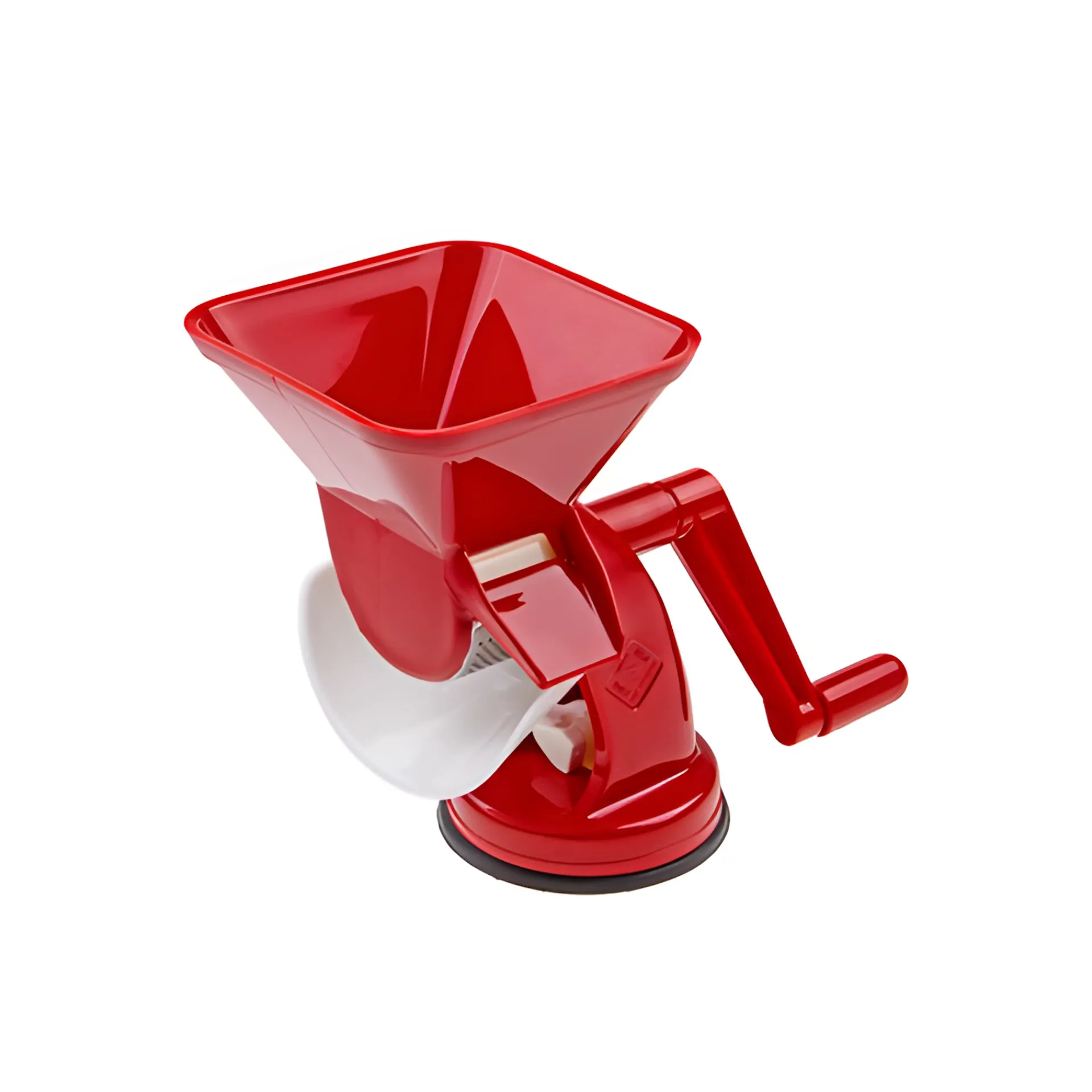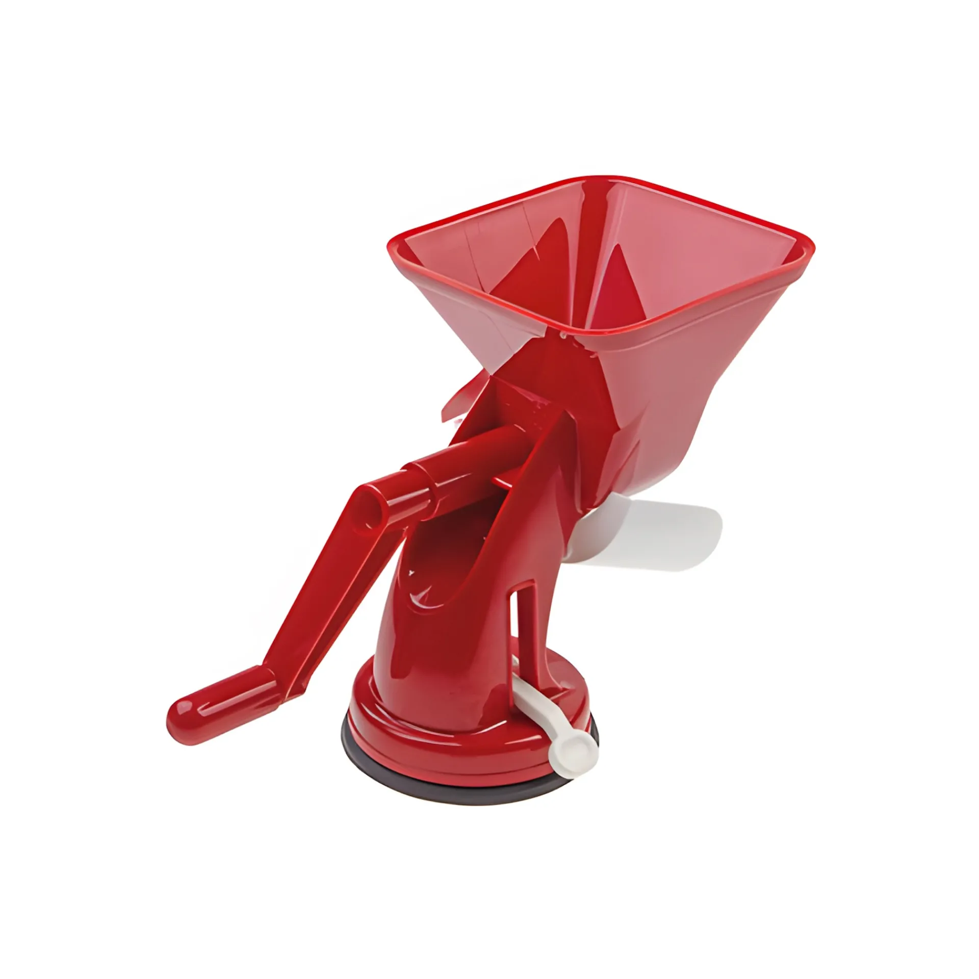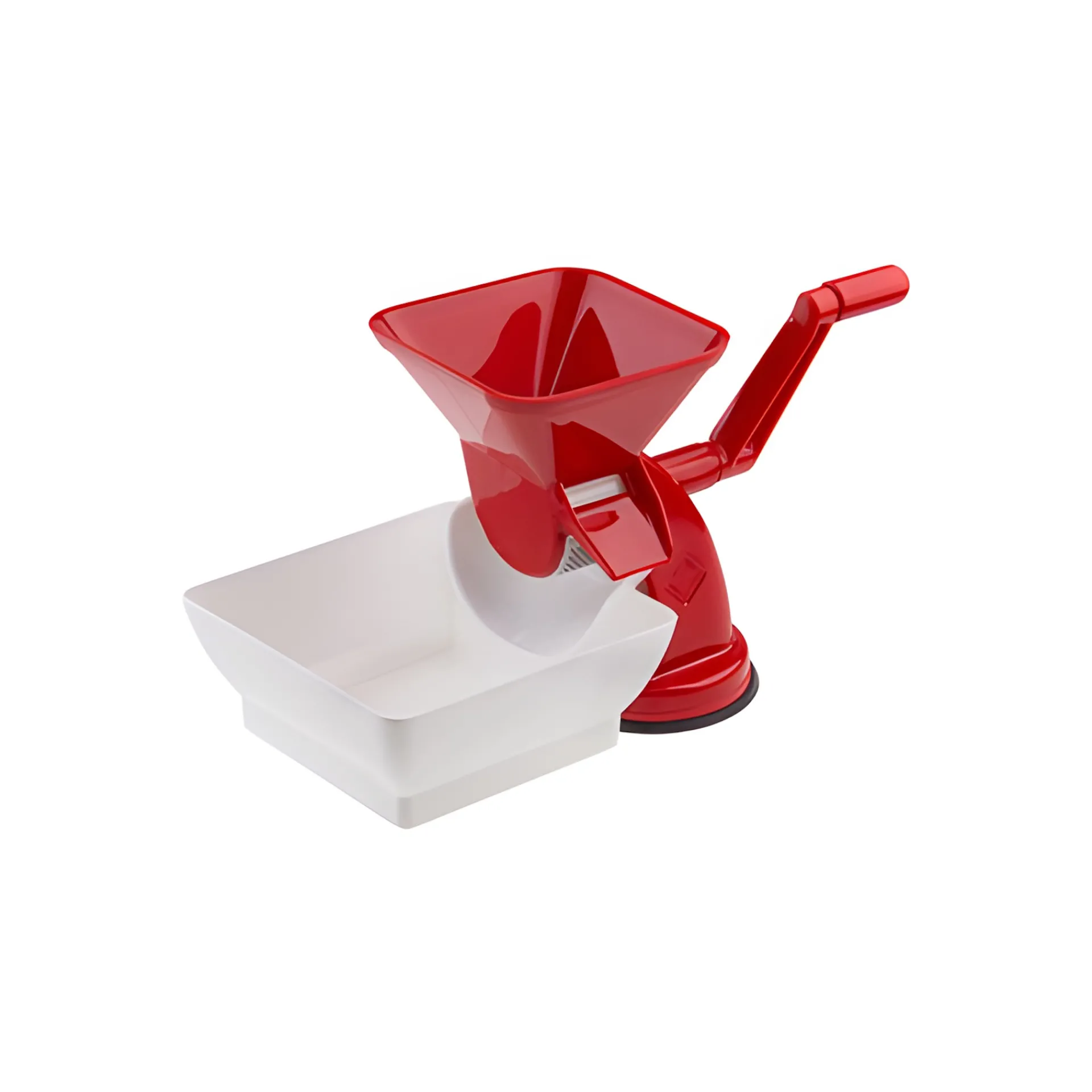 Dieses geschickte Passiergerät ermöglicht es Ihnen Tomatensaft mit Fruchtfleisch, aber ohne Haut und Kerne herzustellen. In einer Stunde können bis zu 50 kg Tomaten verarbeitet werden. Die Presse hat am Standfuß einen Saugnapf und kann damit auf glatten Oberflächen fest fixiert werden. Die rohen Tomaten werden in den Trichter eingefüllt, das Sieb und die Walze trennen die festen Stoffe heraus und die Soße fließt über die Rutsche direkt in die Auffangschale. Die festen Bestandteile der Frucht werden separat an der Seite herausgedrückt. Weiches Obst und gekochtes Gemüse kann genauso verarbeitet werden.