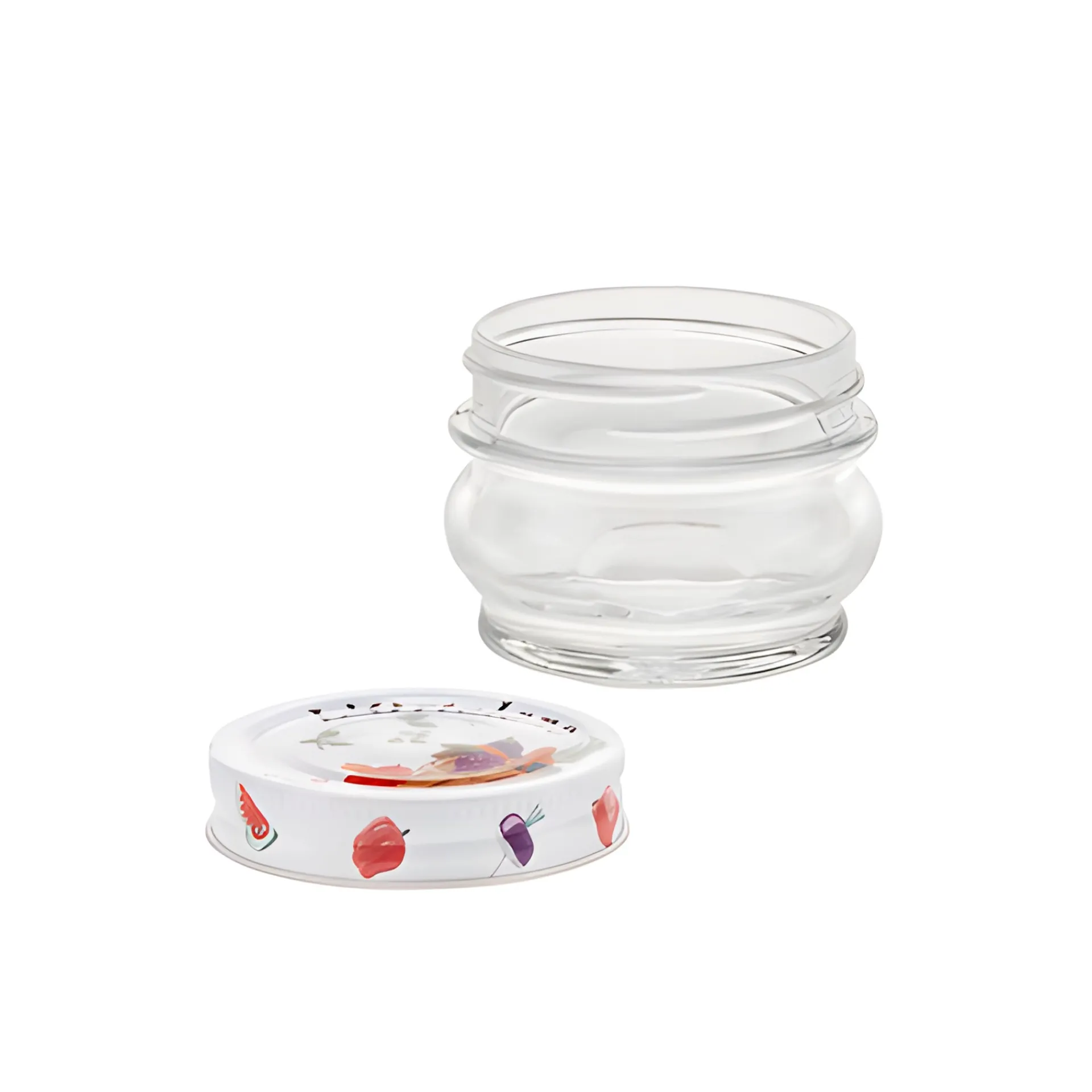 Das Marmeladenglas wird inklusive des bunt bedruckten Schraubdeckels CT 70 geliefert, der mit einem Vakuumknopf ausgestattet ist. Dieser Verschluss ist auch passend für Mason Jars Regular Mouth.