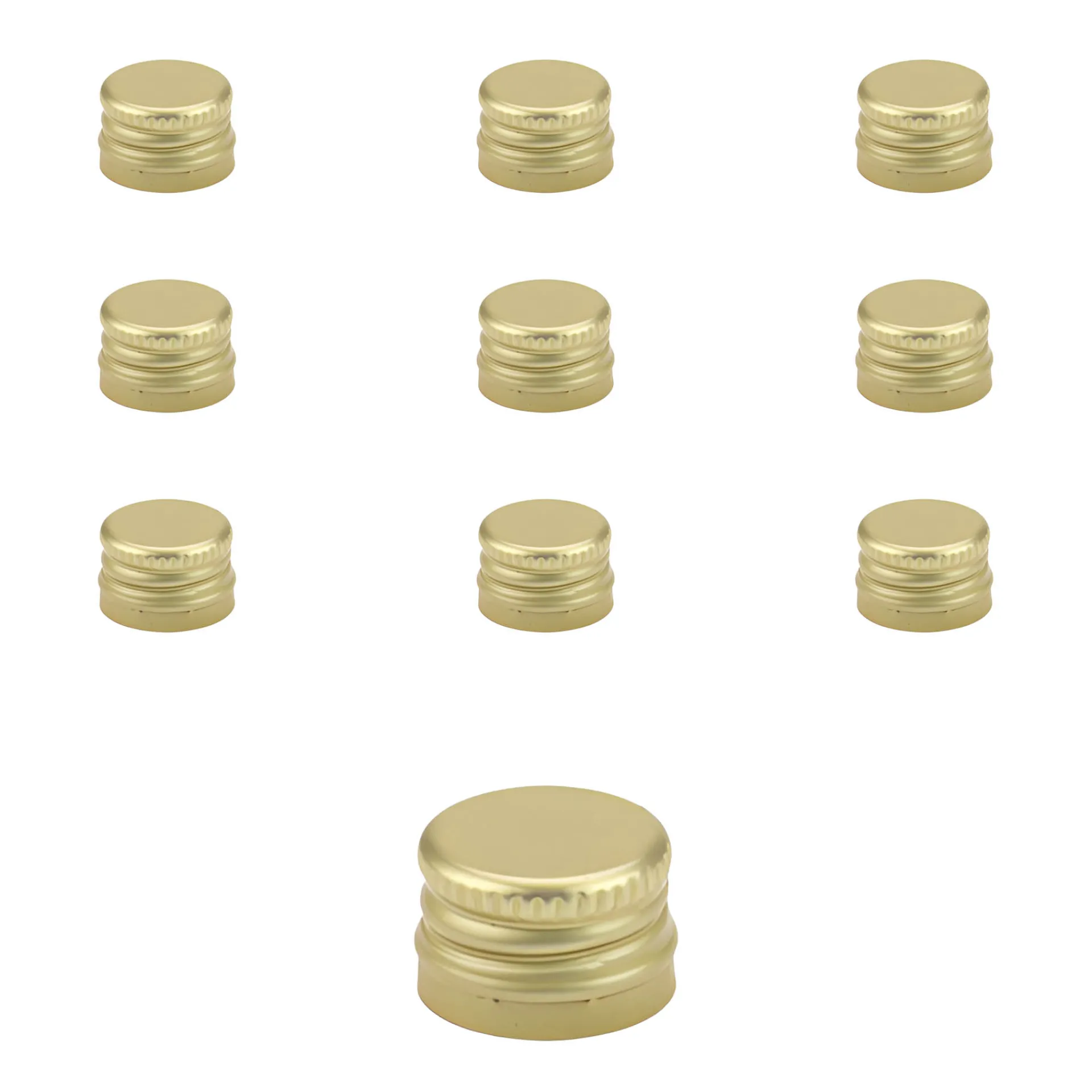 Der goldfarbene Aluminiumverschluss im praktischen 10er-Pack hat einen Originalitätsring zur Versiegelung und passt auf Flaschen mit einer PP 18-Mündung. Durch seine klassische Farbgebung harmoniert der Schraubdeckel mit den unterschiedlichsten Glasfarben.