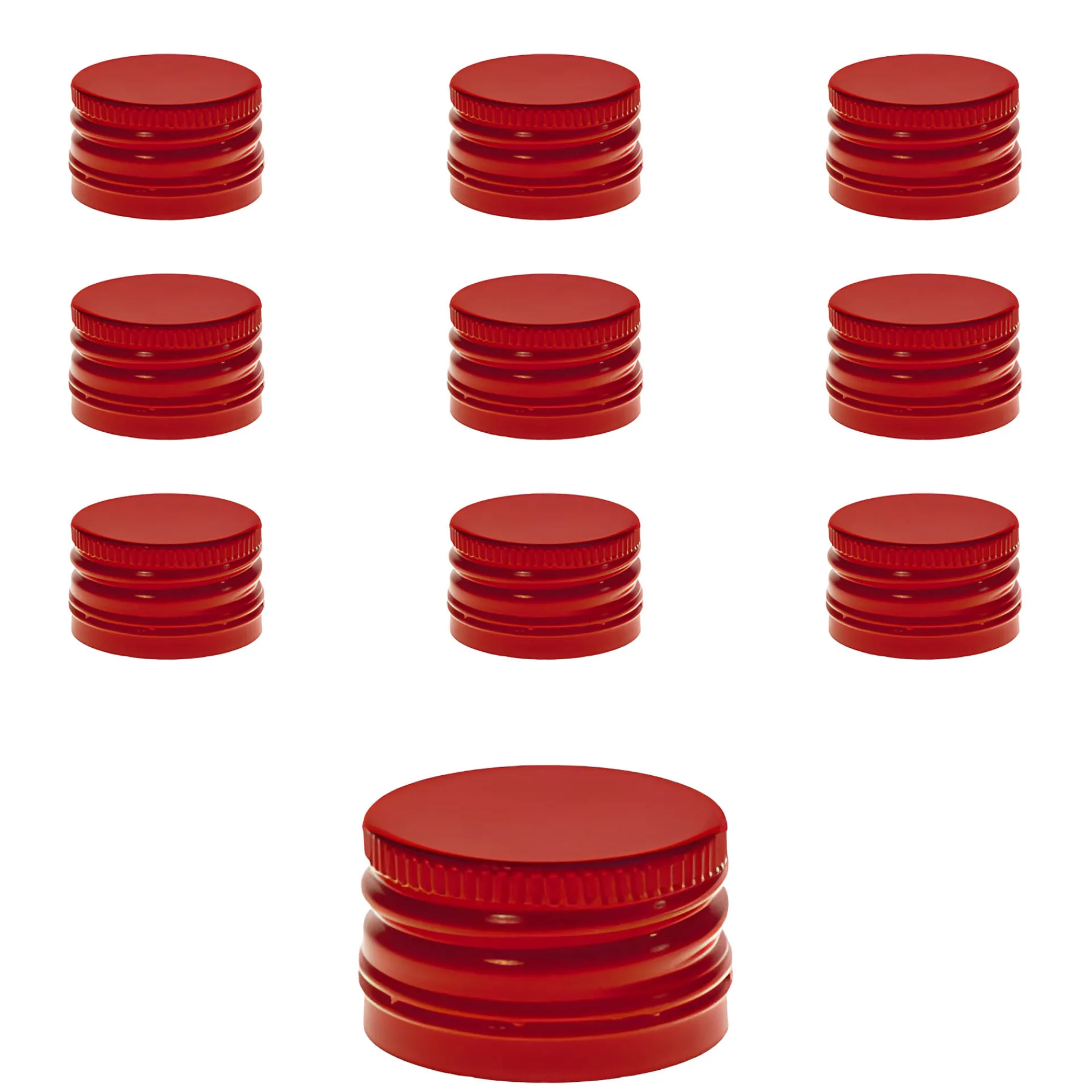 Der rote Schraubverschluss aus Aluminium im praktischen 10er-Pack passt auf alle Schraubflaschen mit einer PP 28-Mündung, z. B. auf Geradhalsflaschen (ab 200 ml), die Pinta 350 ml und 500 ml SV und die Taschenflaschen (ab 100 ml). Er hat einen Originalitätsring zur Versiegelung.
