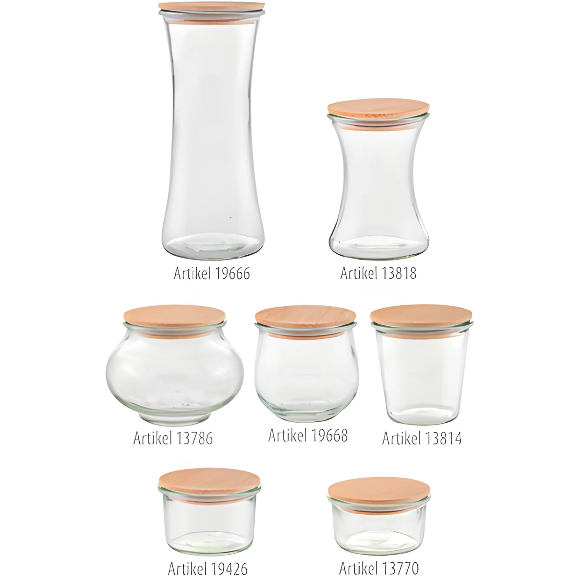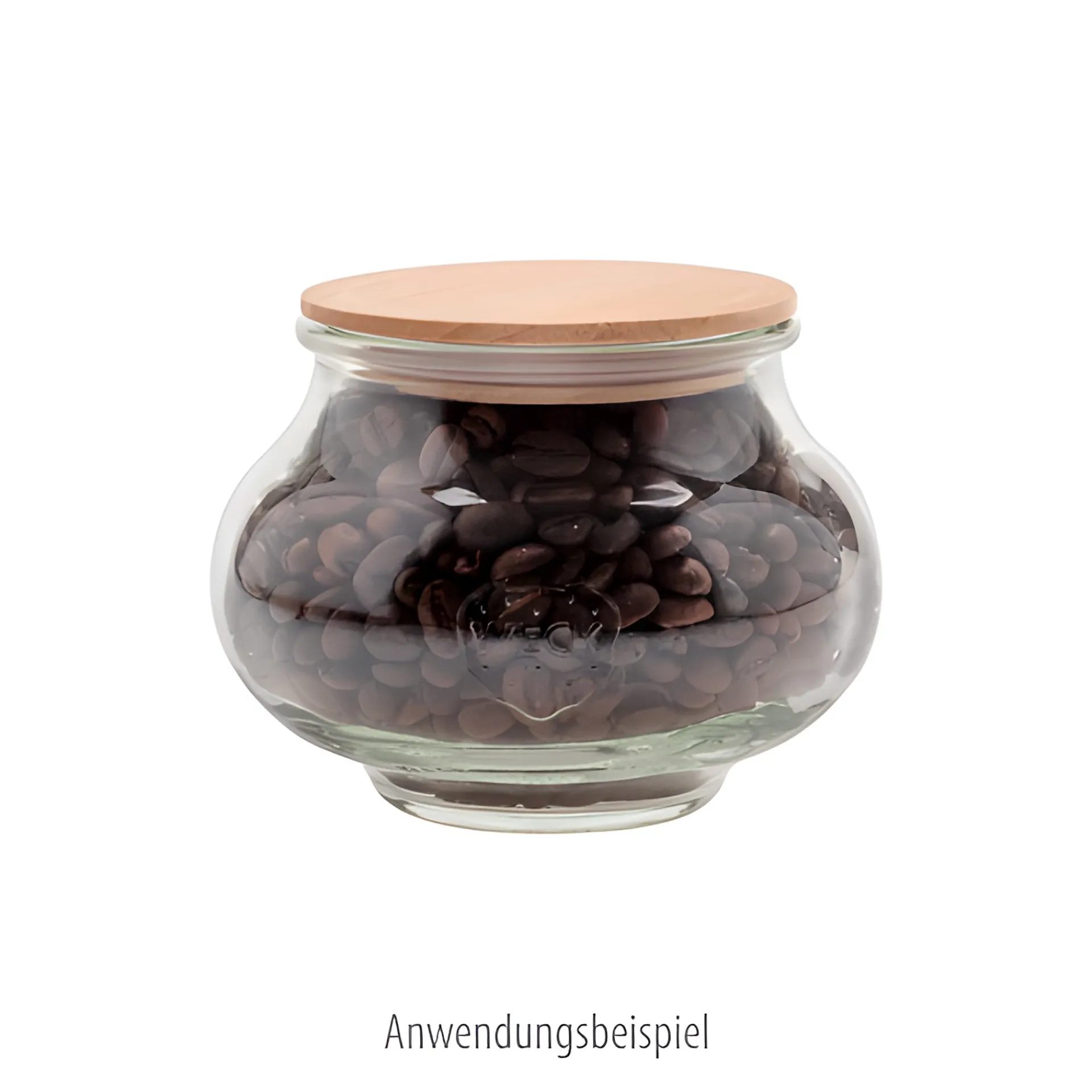 Durch das Naturmaterial mit individueller Maserung sehen die WECK-Gläser mit diesem Holzdeckel nicht nur in der Küche toll aus. Auch Süßigkeiten, Nüsse oder andere Knabbereien kommen damit im Wohnzimmer oder auf Feiern gut zur Geltung.