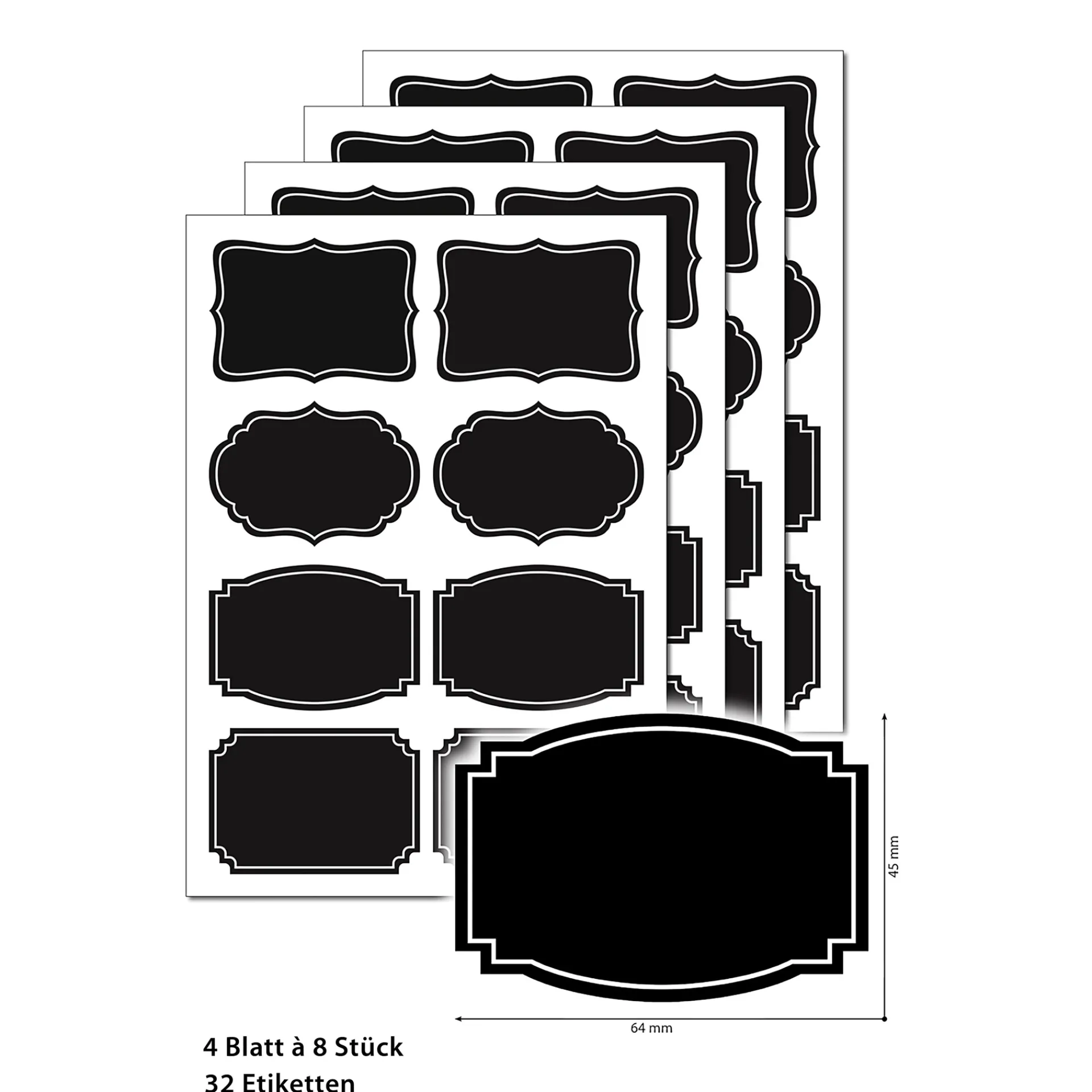 In diesem Pack sind 4 Blatt mit je 8 Kreide-Etiketten enthalten (32 Etiketten insgesamt).