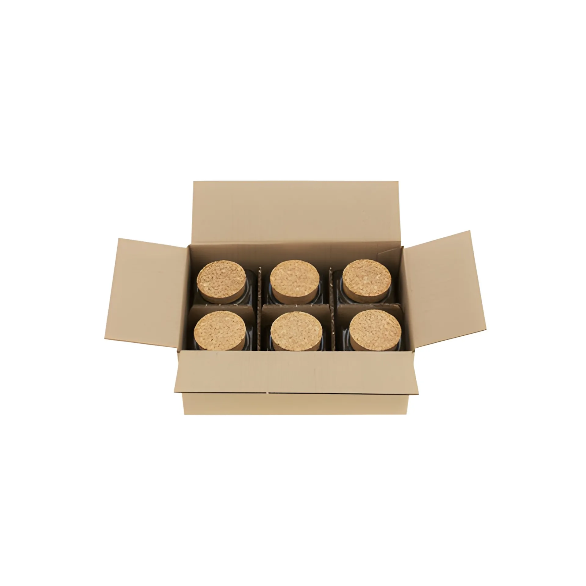 Praktischer Faltkarton, der durch seine Aufteilung einen sicheren Transport von bis zu 6 Gläsern ermöglicht. Der Karton besteht aus stabiler Pappe, Trennstege verhindern, dass sich die Gläser berühren. Produziert wurde diese Verpackung für das Sechseckglas 196 ml, es passen aber auch viele andere Gläser hinein.