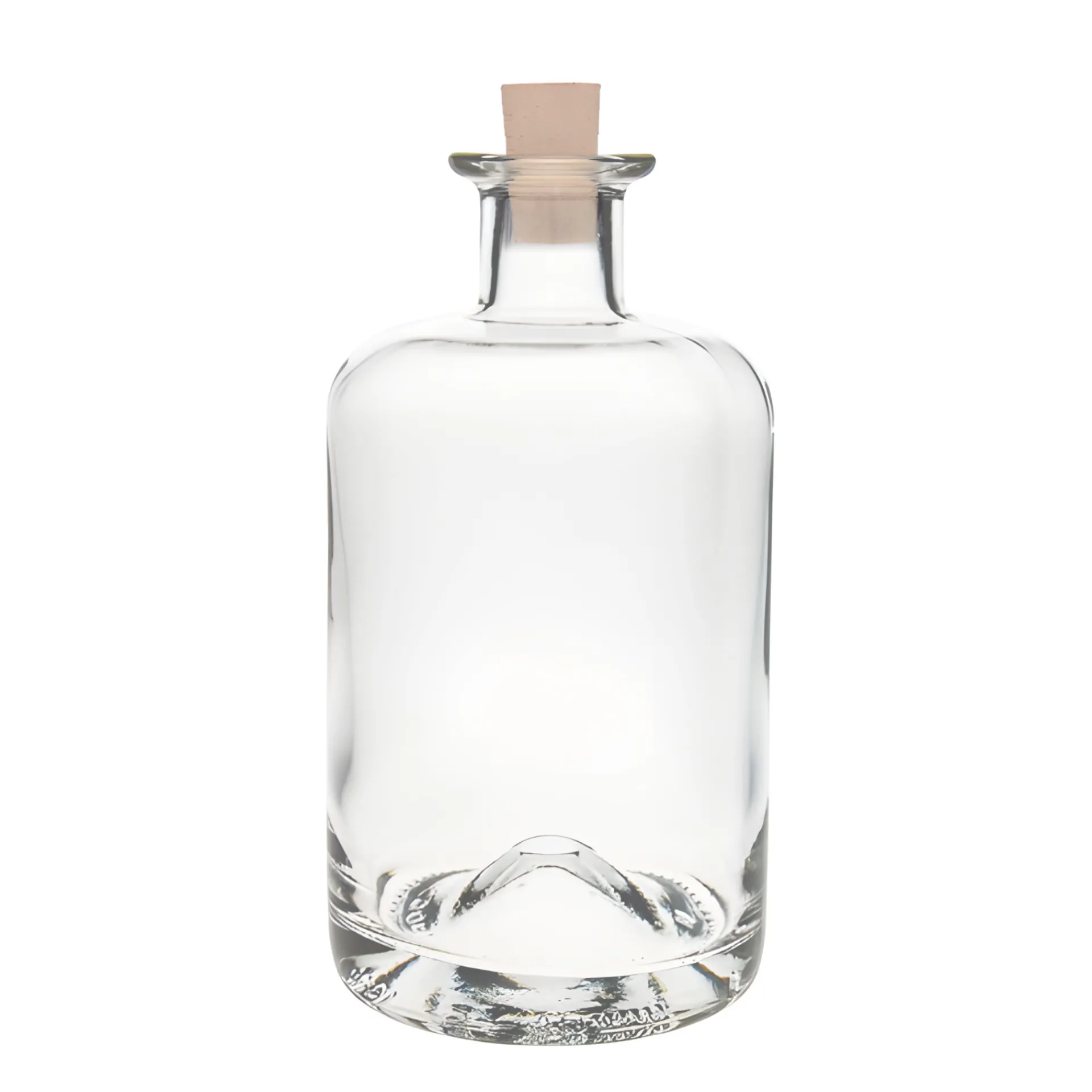 Die Apothekerflasche ist ein Klassiker unter den Spirituosenflaschen. Ihre besonderen Merkmale sind die abgerundeten Schultern, der schwere Boden und die schöne Tellermündung (Ø 40 mm), die mit einem Korken oder Stopfen sicher verschlossen wird. Mit 500 ml Füllvolumen hat sie die Ideale Größe für edlen Whisky, leckere Liköre oder feine Essenzen. Ein weiterer Vorteil, die Flasche kann prima etikettiert werden.