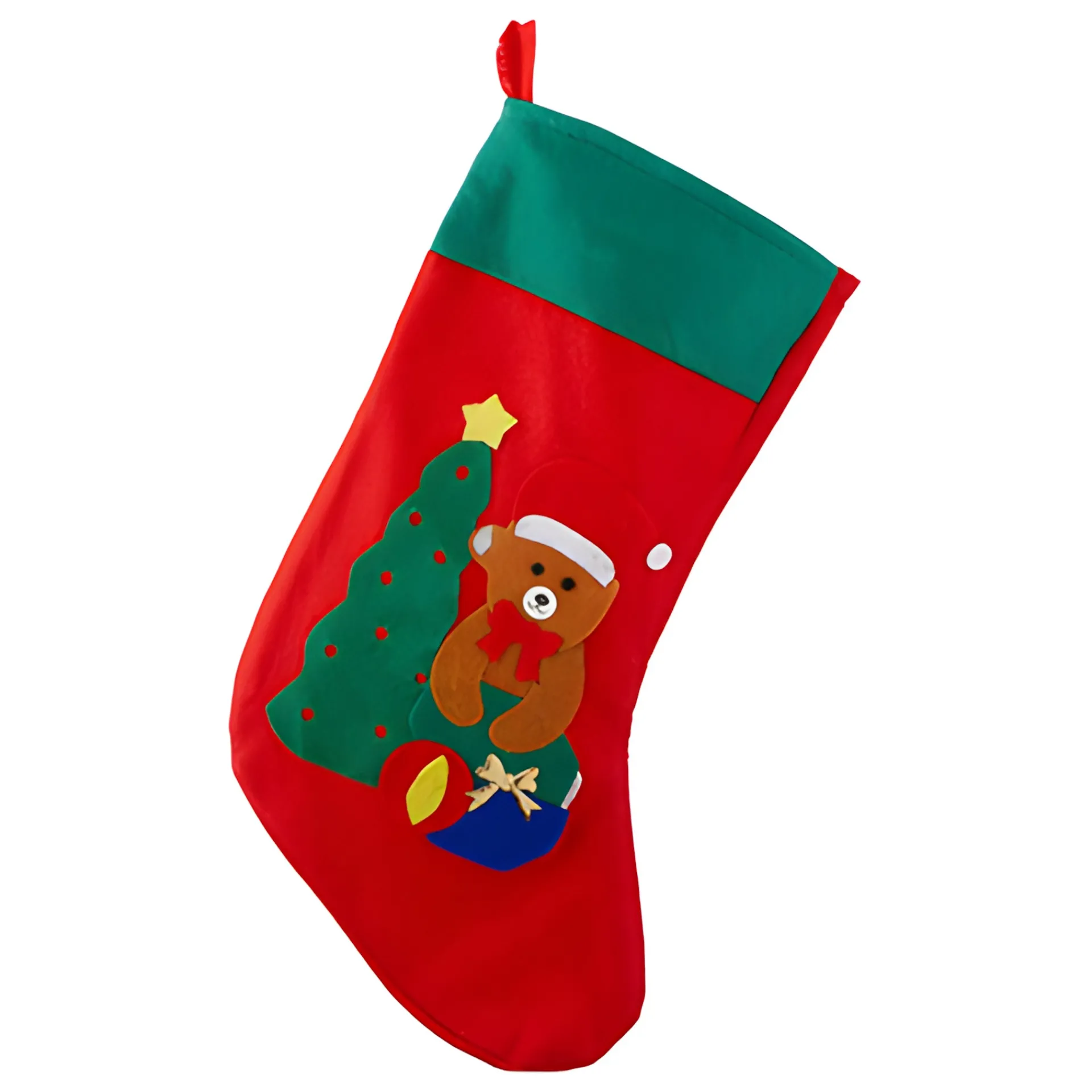Das Aufhängen von einem Weihnachtsstrumpf ist eine schöne Tradition zu Weihnachten, die immer mehr Anklang findet. Die große befüllbare Weihnachtssocke zum Anhängen aus roten und grünen Filz ist mit verschiedenen weihnachtlichen Figuren (Bärchen, Schneemann und Weihnachtsmann können leider nicht ausgesucht werden) verziert, eine bezaubernde Verpackung für Weihnachtsgeschenke.