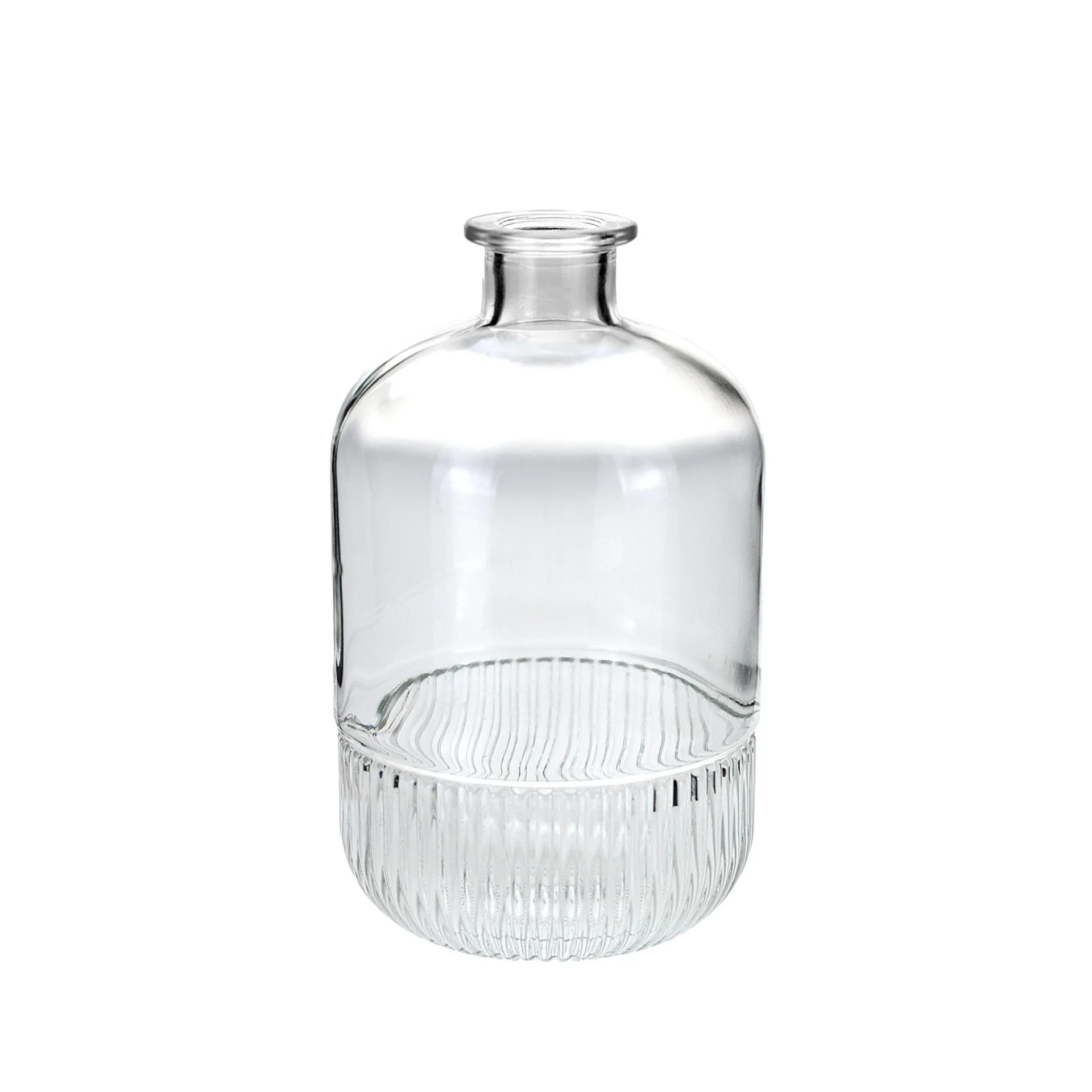 Das Besondere dieser Flasche sind die vertikalen Linien auf ihrer Oberfläche, die sie von glatten Klarglasflaschen unterscheiden und ihr einen schicken Vintage-Look verleihen. Sie verlaufen vom Boden aus senkrecht empor und bilden ein schmales Band, das nur einen kleinen Teil des Flaschenkörpers einnimmt. Die restliche Oberfläche ist glatt und bietet viel Platz für Etiketten und Banderolen. Die Etikettierfläche hat eine Höhe von etwa 55 mm und einen Durchmesser von ca. 96 mm. Durch ihre Linienstruktur erhält die Facettenflasche nicht nur ein tolles Aussehen, sondern auch einen guten Griff und liegt sicher in der Hand. Auch als Wasserkaraffe auf dem Tisch oder als Vase für einzelne Blumen macht sie viel her. Ein super Mitbringsel und eine außergewöhnliche Verpackung für ein selbstgemachtes Geschenk, über das sich jeder freut.