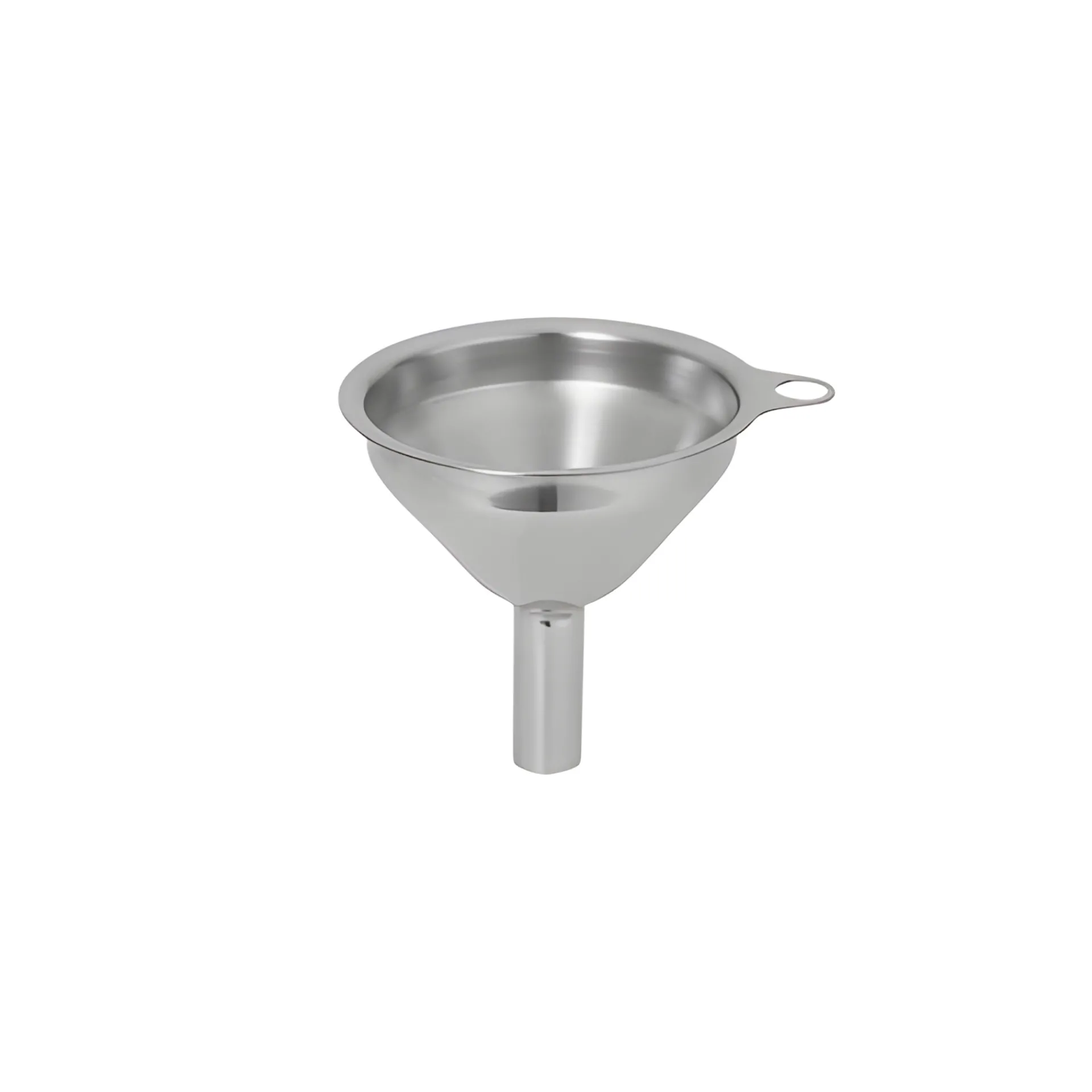 Der kleine Edelstahltrichter ist für alle flüssigen Lebensmittel geeignet und durch die angebrachte Öse kann man ihn gut halten oder sicher während der Abfüllung befestigen.