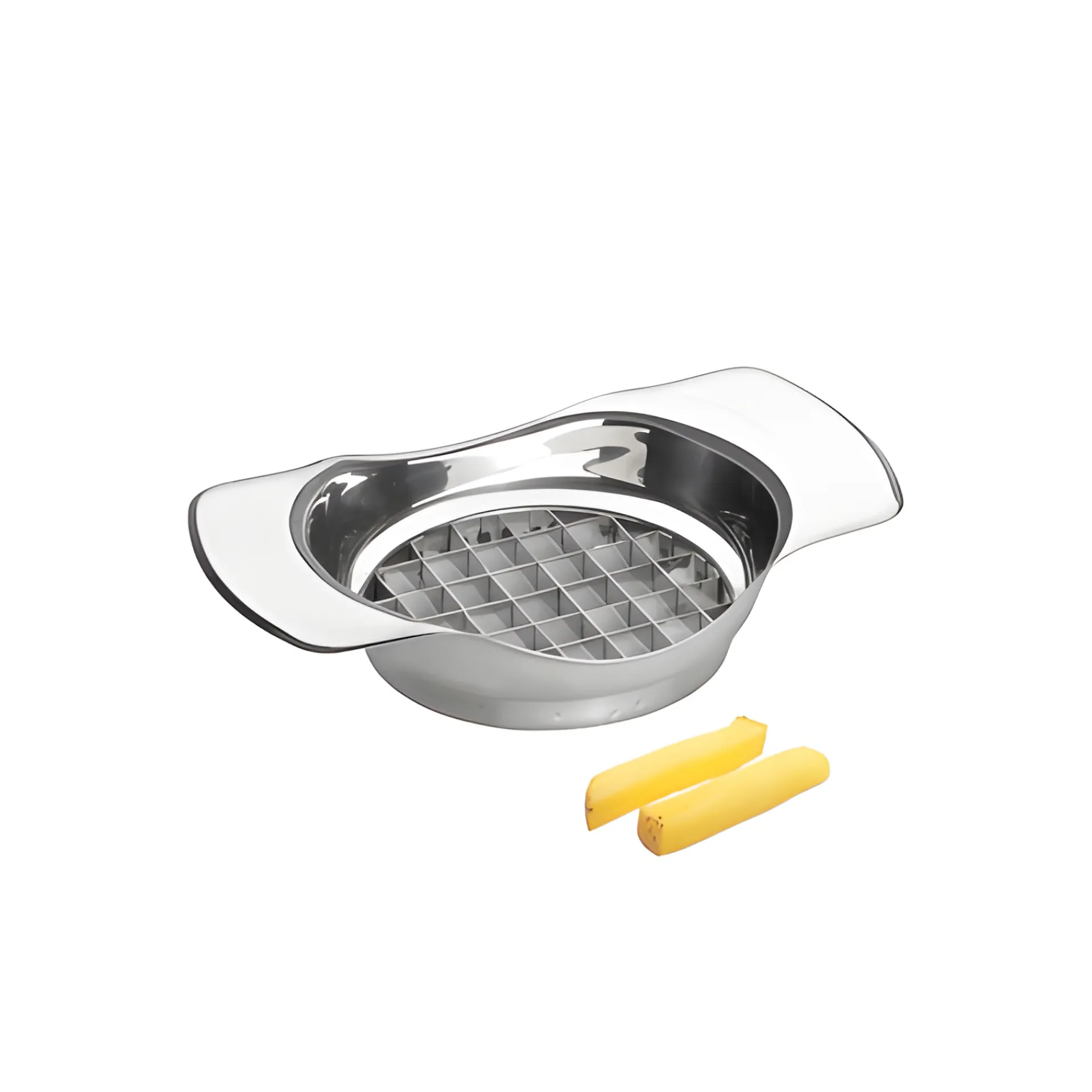 Der Gemüsespalter ist 17,7 cm lang und 11,5 cm breit und ideal, um Pommes zuzubereiten. Einfach die Kartoffel unter das Gitter (Ø 9 cm) legen und den Gemüseteiler an seinen zwei Griffen herunterdrücken. Schon haben sie viele gleichmäßige Stifte. Natürlich lassen sich auf diese Weise auch viele andere Gemüsesorten wie z. B. Kohlrabi oder Obst stifteln. Durch seine breiten Griffe und sein scharfes Schneidegitter ist er ganz einfach zu bedienen. Und mit seinem kompakten Design ist er platzsparend in der Küchenschublade zu verstauen. Ein super Küchenhelfer – einfach, effizient und langlebig.