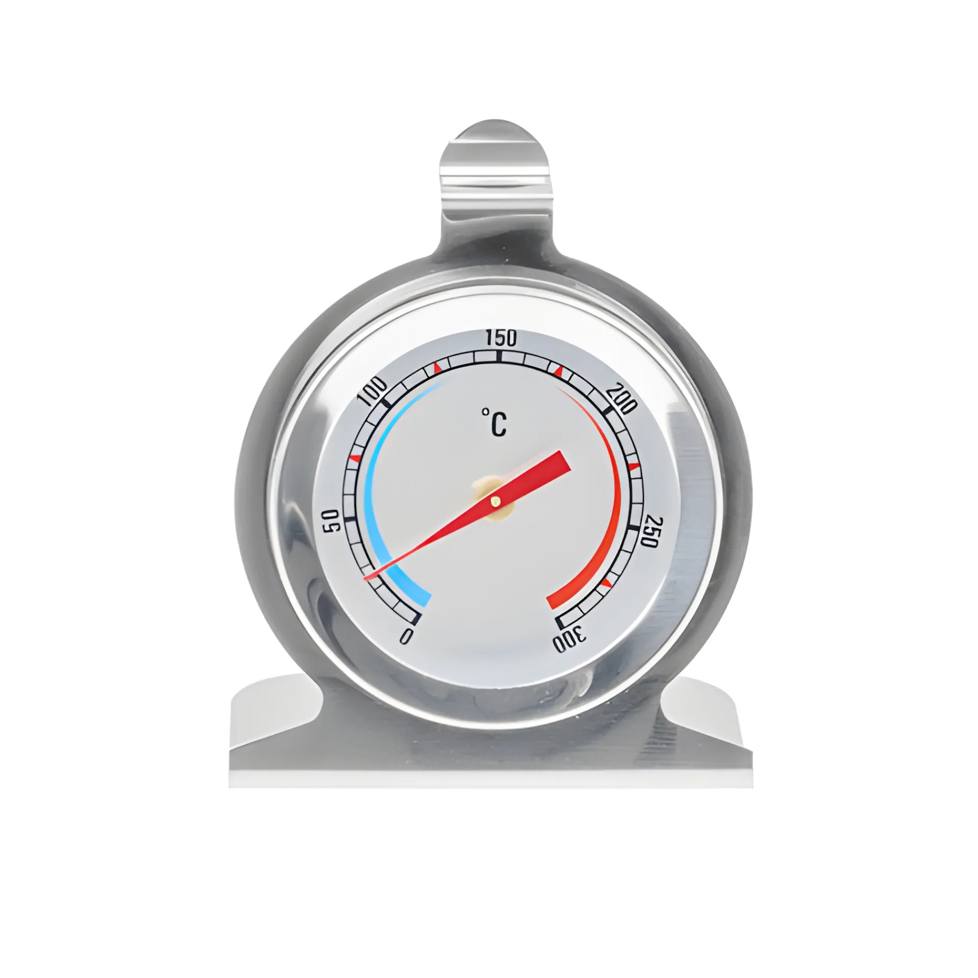 Das Küchenthermometer hat eine übersichtliche Ableseskala mit einem großen Ziffernblatt und klaren blauen und roten Zonenanzeigen, sodass Sie die Ofentemperatur leicht ablesen können. Der Messbereich liegt zwischen 0 °C und 300 °C. Es hat einen stabilen Fuß und einen Haken und kann sowohl am Rost oder Backblech eingehängt als auch im Ofen aufgestellt werden.