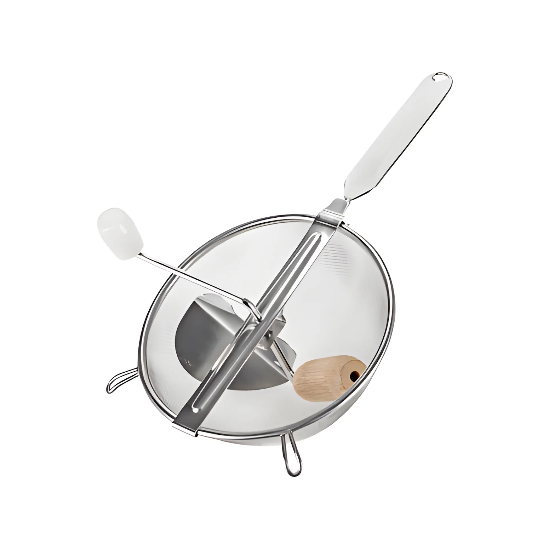 Dieses klassische Passiersieb mit feinmaschigem Sieb eignet sich ideal zum Pürieren und Entsaften von Gemüse und Obst, z. B. für Pürees, Saucen oder Babynahrung. Die Kurbel mit großem Drehknauf ermöglicht ein angenehmes Arbeiten, um z. B. Apfel- oder Beerenmus herzustellen. Die Auflagerasten garantieren sicheren Halt auf Töpfen und Schüsseln.