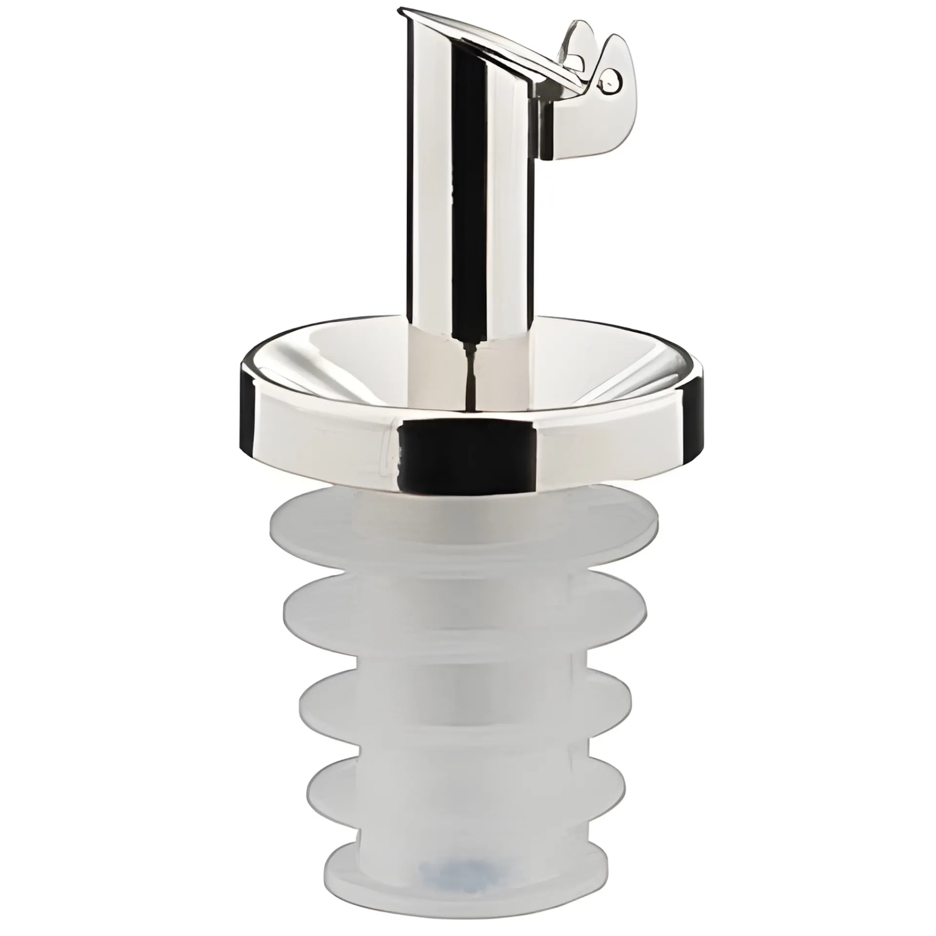Der speziell auf Essig abgestimmte Ausgießer mit Silikonstopfen hat ein extra dünnes Gießrohr aus Edelstahl zum feinen Dosieren. Das Röhrchen ist mit einer kleinen Deckelklappe und einem Rückfluss-System ausgestattet, das herunterlaufende Tropfen in die Flasche zurückleitet.