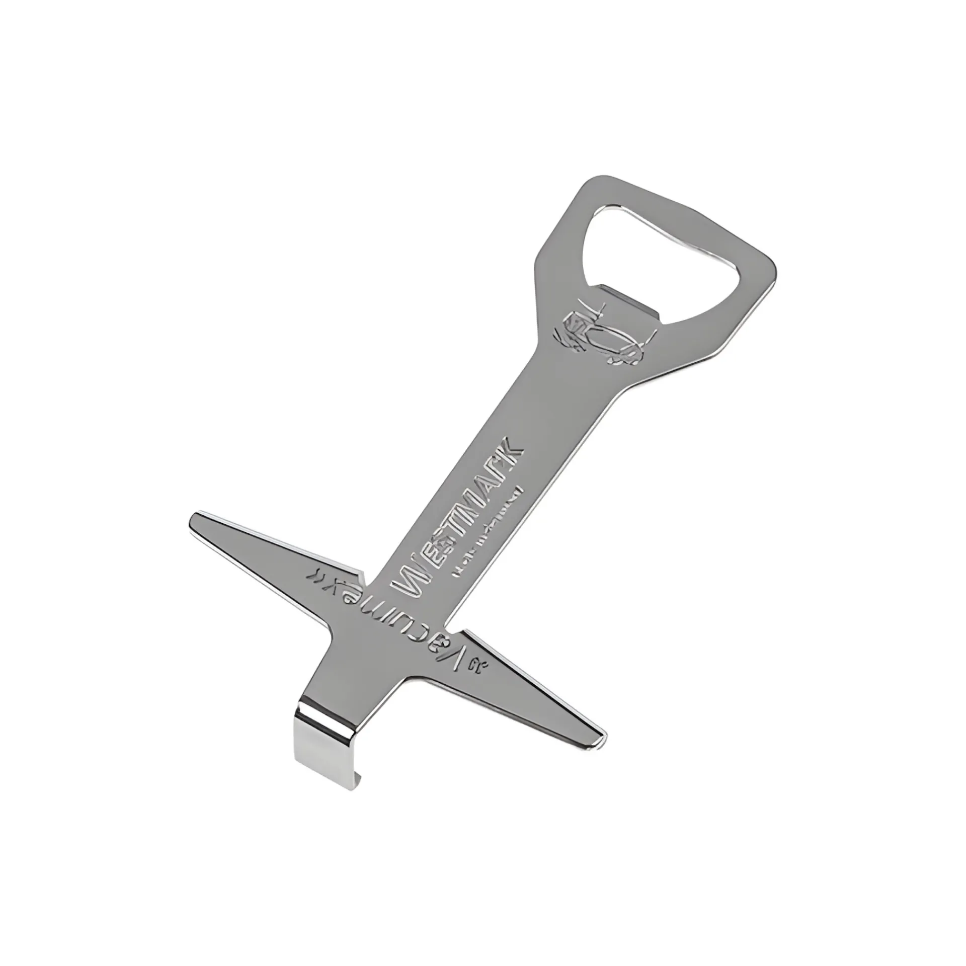 Der Deckel-Lifter hat noch eine weitere Funktion: Er hat auch einen integrierten Kapselheber für Kronkorkenverschlüsse von Flaschen. Der Alleskönner besteht aus hochwertigem verchromtem Stahl, ist stabil und langlebig und durch seinen breiten, flachen Griff einfach in der Handhabung. Mit seiner kompakten Form passt er in jede Küchenschublade.